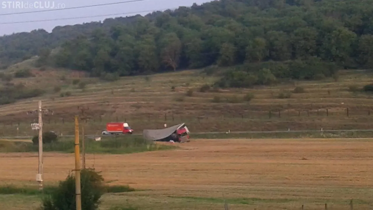 TIR răsturnat pe varianta Vâlcele Apahida FOTO