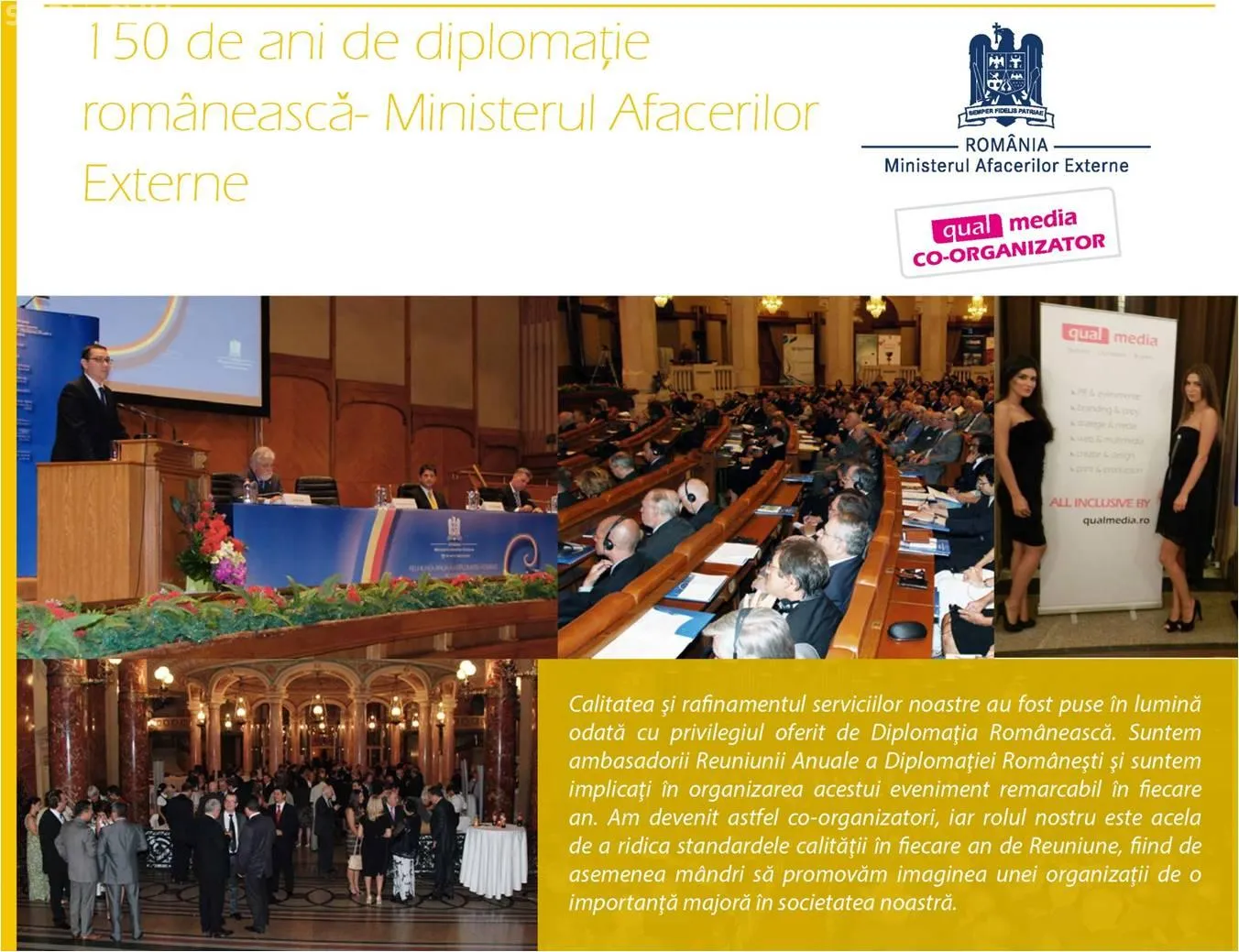 Qual Media Group a ales să sprijine această acţiune tocmai fiindcă se identifică cu unul dintre principalele scopuri ale agenţiei: promovarea culturii, a tradiţiilor şi a frumuseţilor naturale româneşti nu doar în rândul audienţei naţionale, ci şi a celei internaţionale, vocatie pe care o urmareste in calitate de membră a Parlamentului European al Companiilor si prin activitatea birourilor din Cluj-Napoca, Bucuresti, Bruxelles.