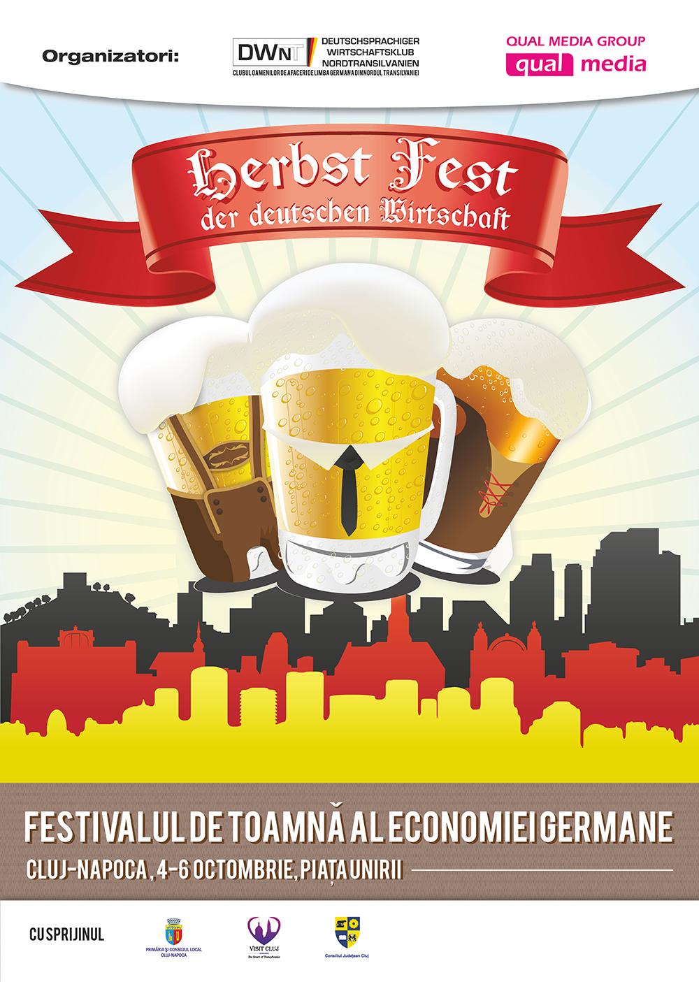 Herbst Fest, Festivalul de Toamnă al Economiei Germane, care va avea loc în perioada 4-6 octombrie, în Piaţa Unirii din Cluj-Napoca este proiectul cel mai intens promovat în această perioadă de Qual Media Group, agenţie de publicitate naţională care oferă servicii complete de advertising - de la creaţie şi branding, la strategie de business şi comunicare, PR şi evenimente, la producţie tipografică de mare capacitate, web development şi aplicaţii IT, până la media-buying internațional.