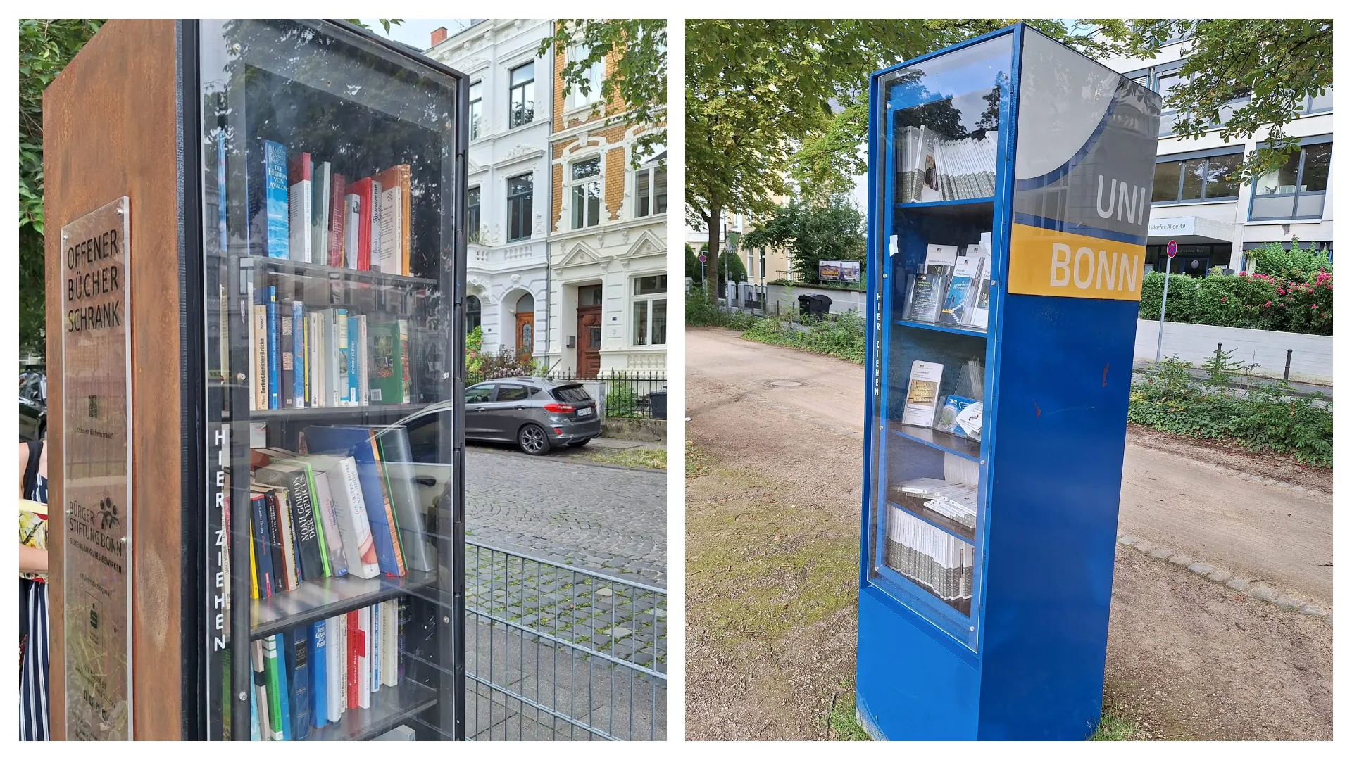 În timp ce se afla în orașul Bonn din Germania, clujeanca a observat mai multe puncte de schimbat/împrumutat cărți, amplasate în spații publice. Femeia propune să apară și în Cluj astfel de spații care ar ajuta la creșterea cititului.