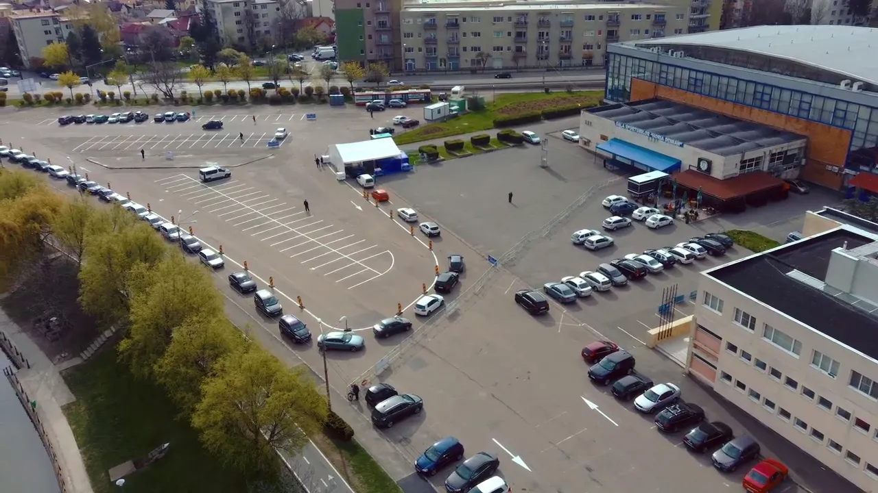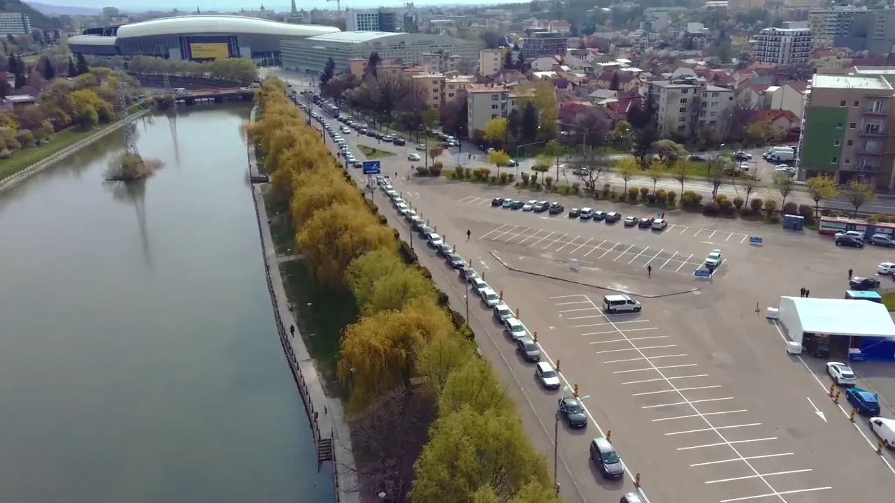 Imaginile aeriene din zona platoului Sălii Sporturilor Cluj, unde s-a deschis centrul de vaccinare ”drive through” (din mașină) sunt dătătoare de speranță.