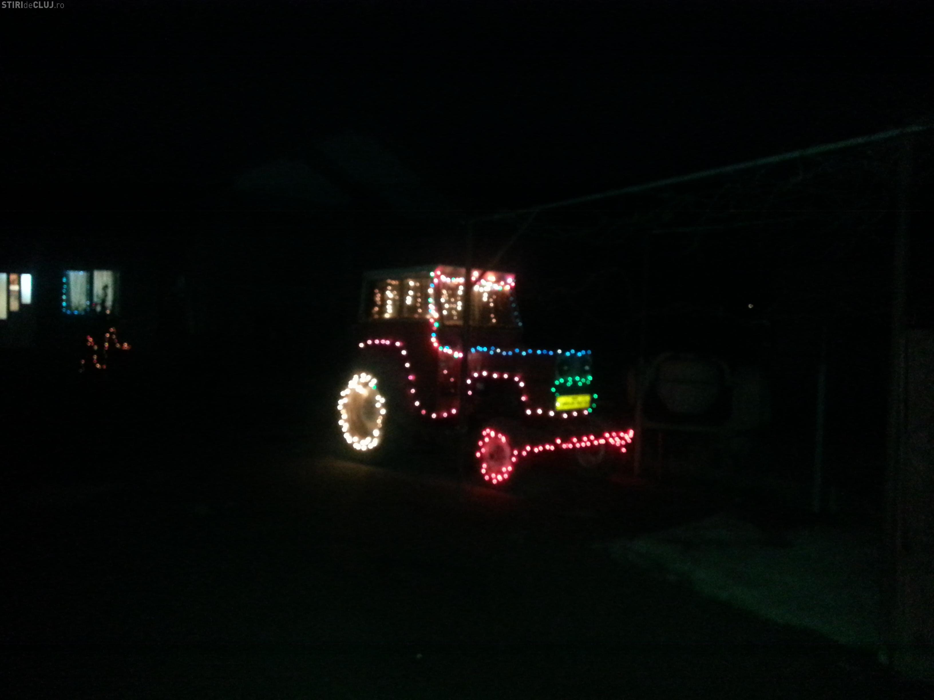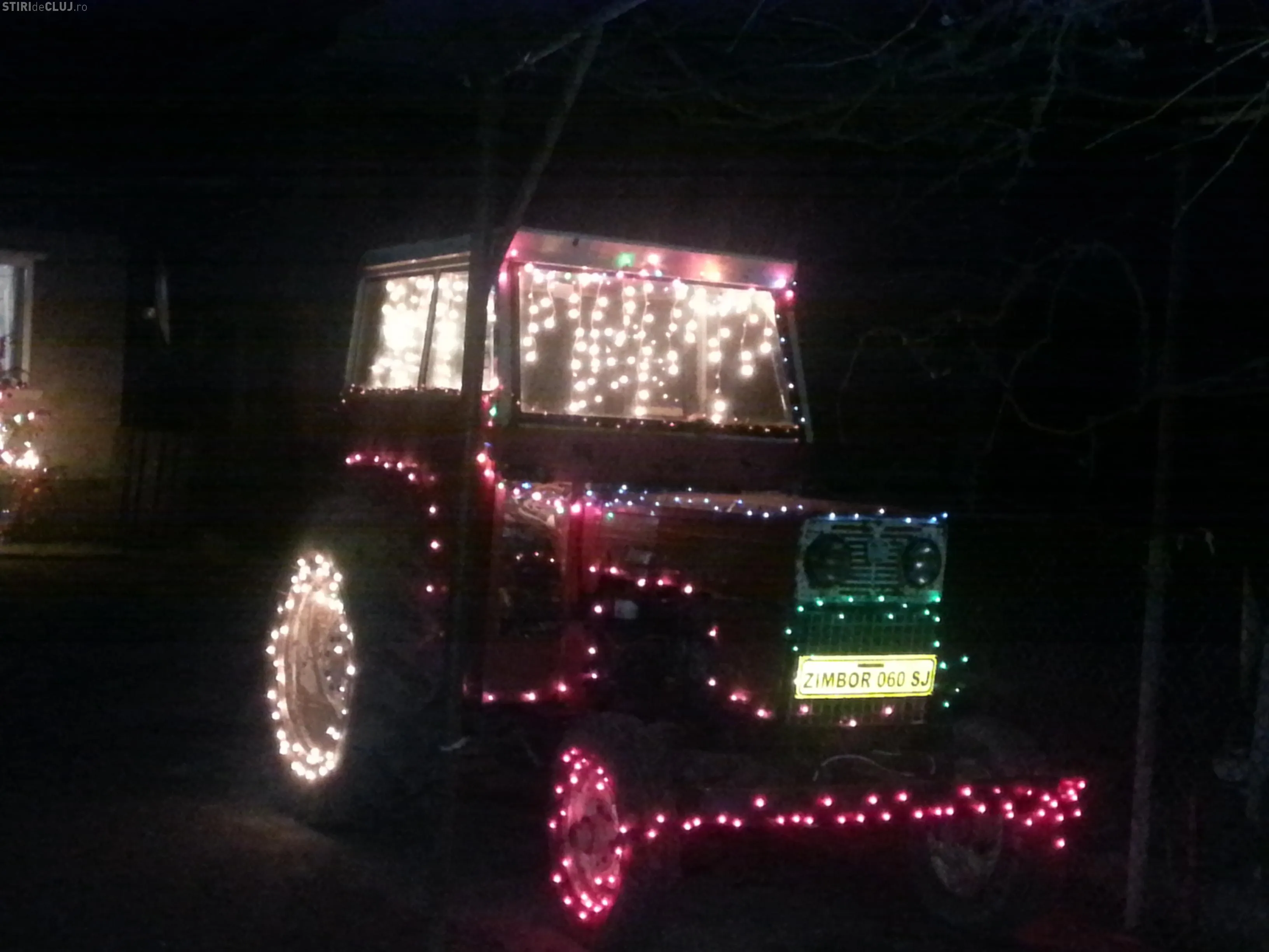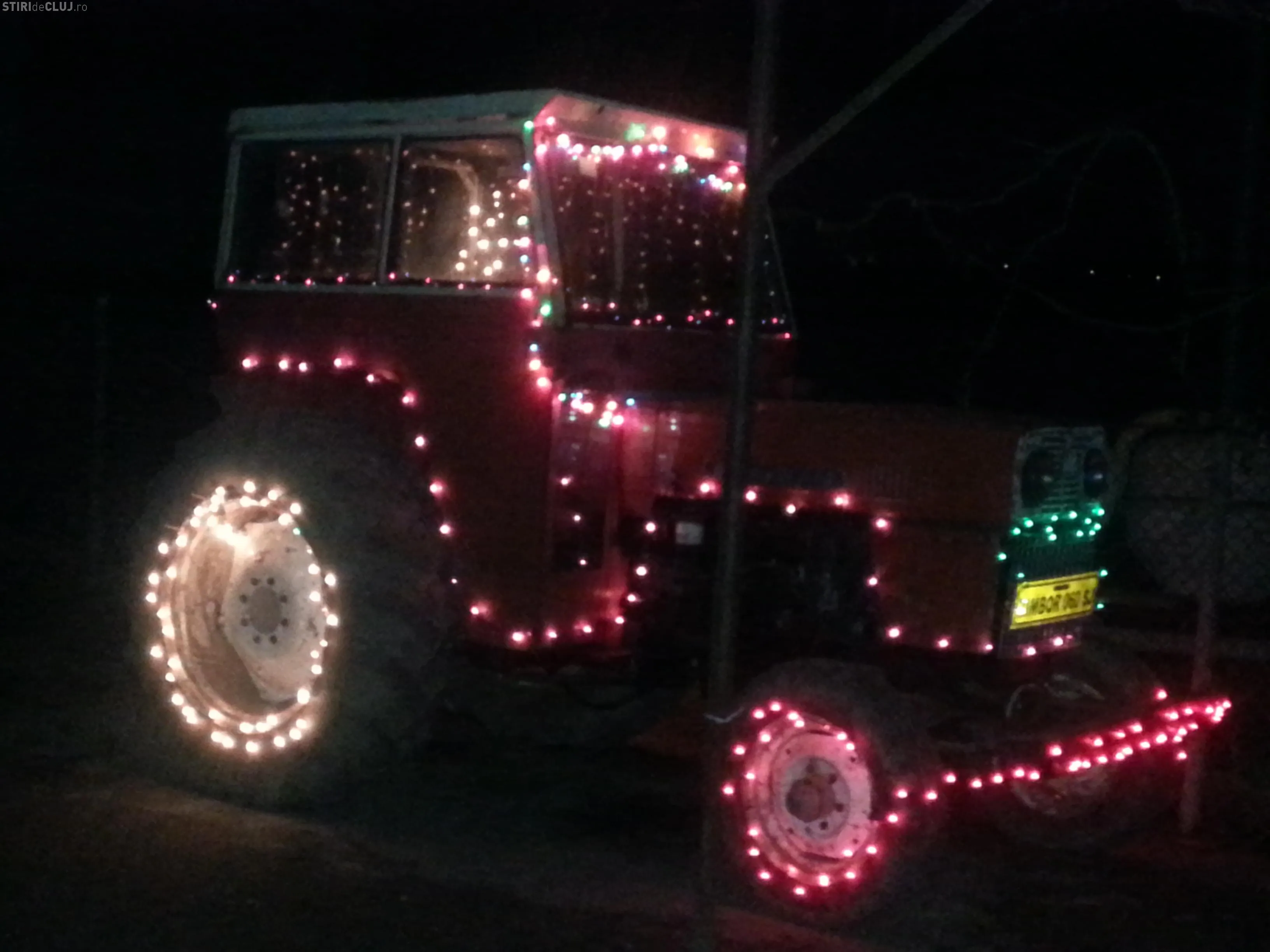 Tractor decorat ca în POVEȘTI cu luminițe de Crăciun la intrare în Cluj - VIDEO