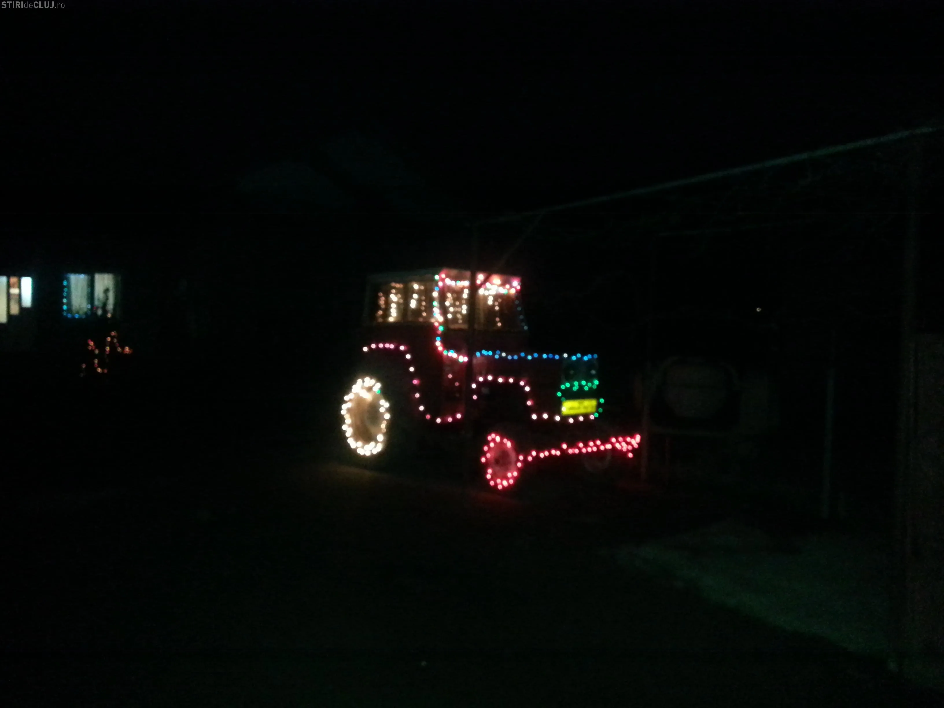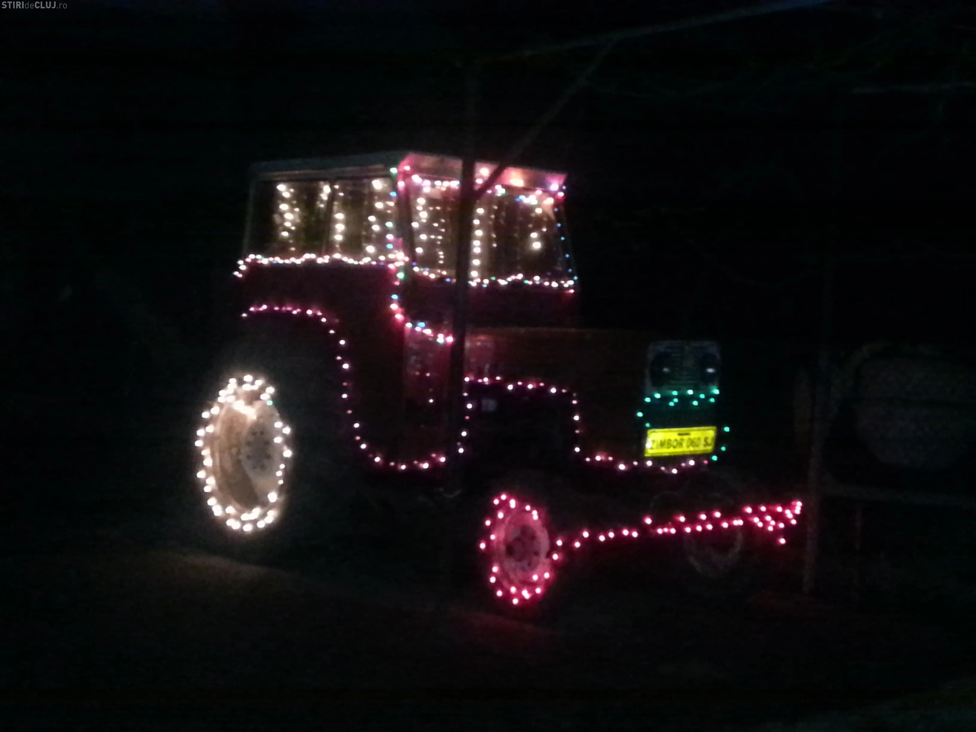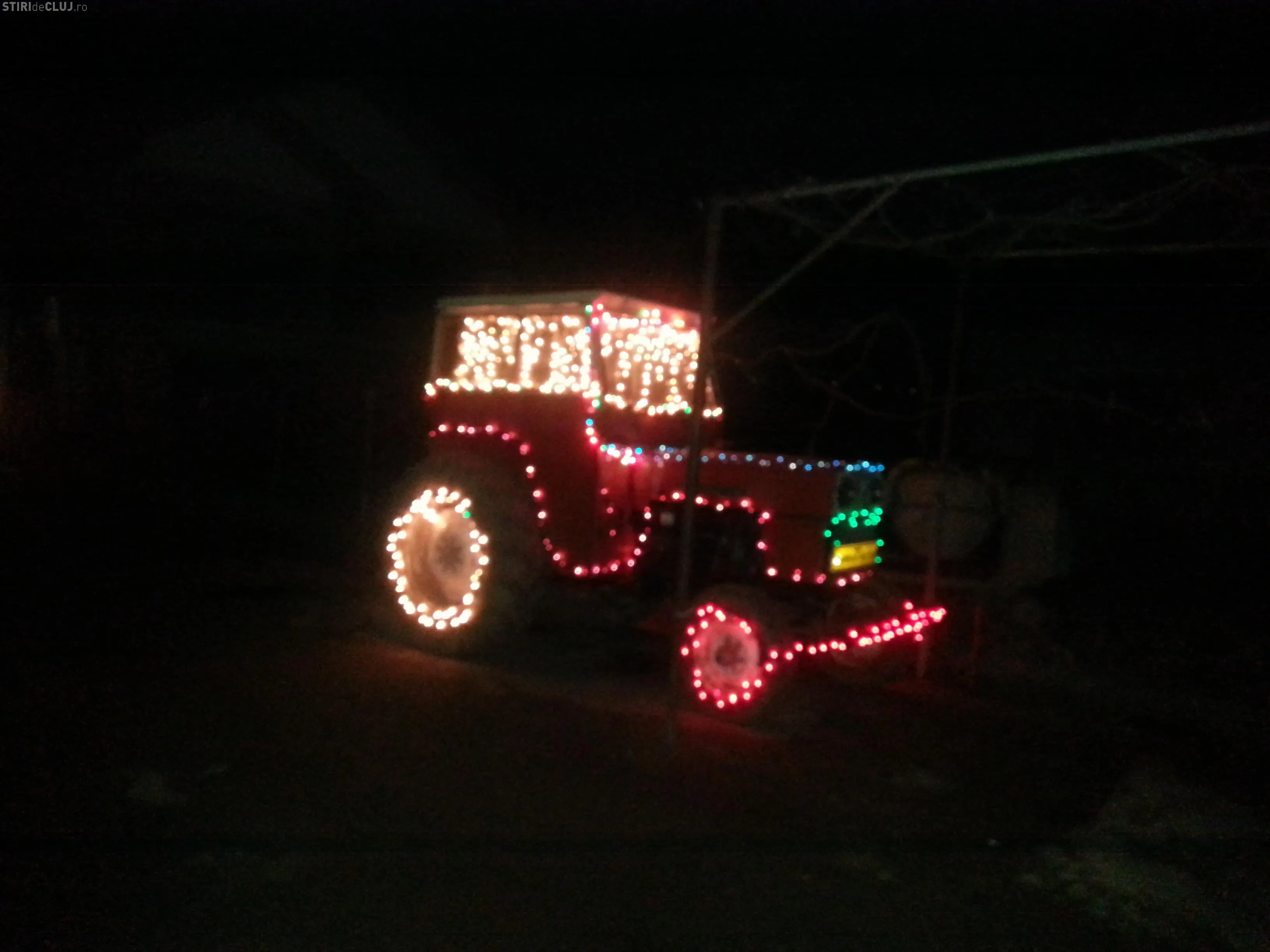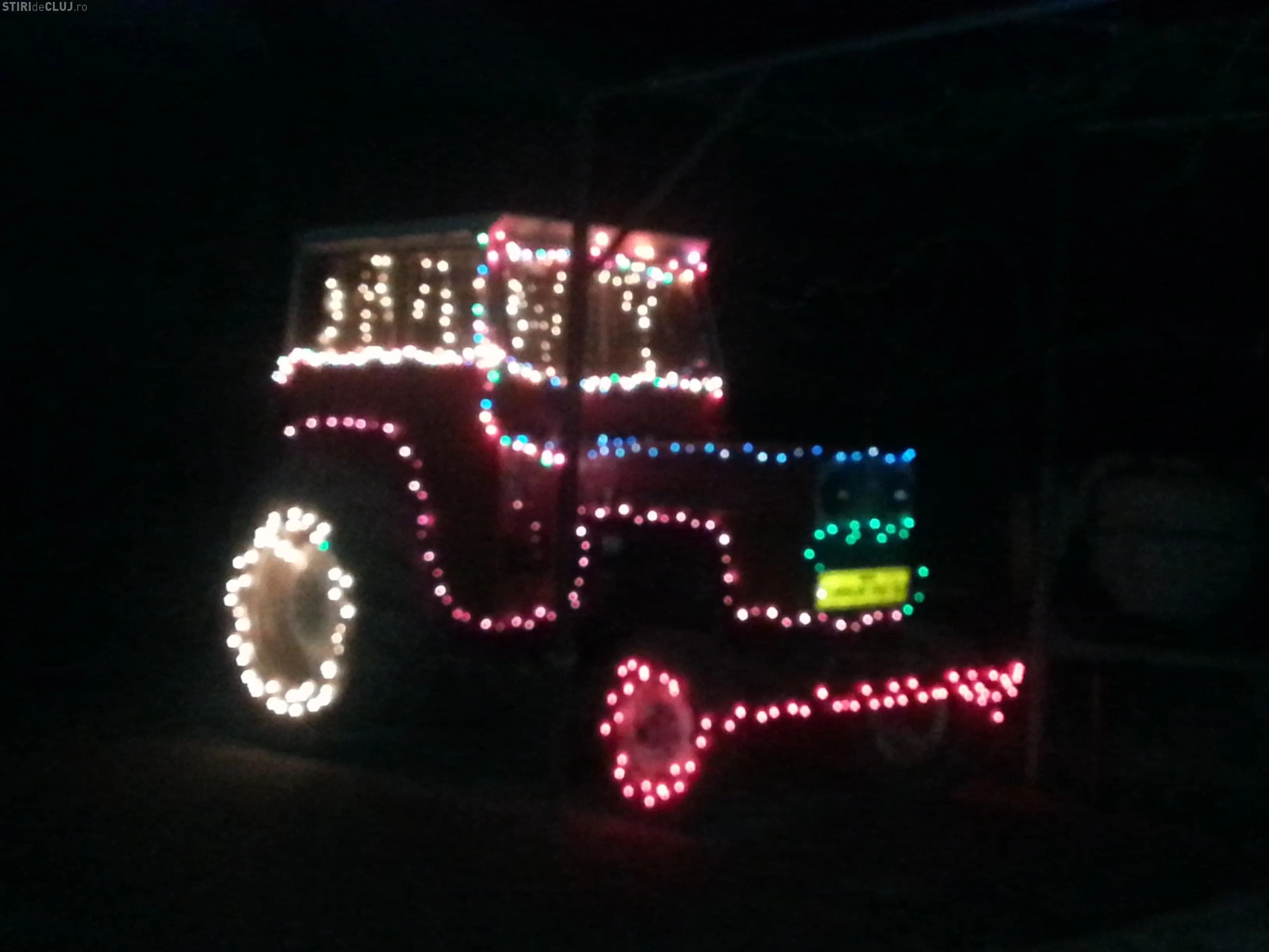 Tractor decorat ca în POVEȘTI cu luminițe de Crăciun la intrare în Cluj - VIDEO