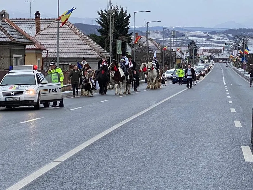 Îmbrăcați în straie tradiționale și călare pe cai, jucăușii de la Șoimii Carpaților au ieșit pe străzi pentru a aduce aminte de o tradiție foarte veche.