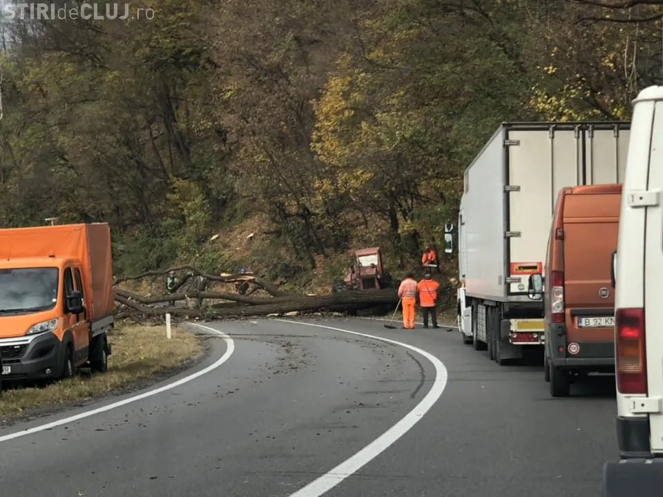 Trafic blocat pentru aproape două ore pe un drum din Cluj, din cauza unor copaci căzuți pe șosea FOTO