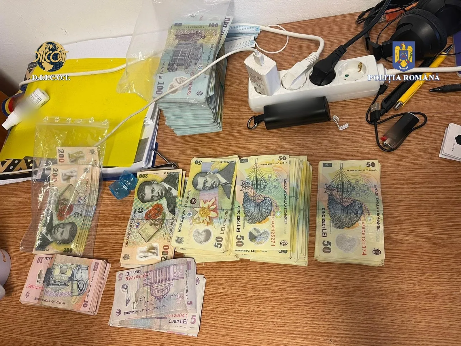 De asemenea, au fost descoperiți și ridicați 104.305 lei, un aparat de vidat, un cântar de mare precizie, un telefon mobil, precum și alte mijloace de probă.
