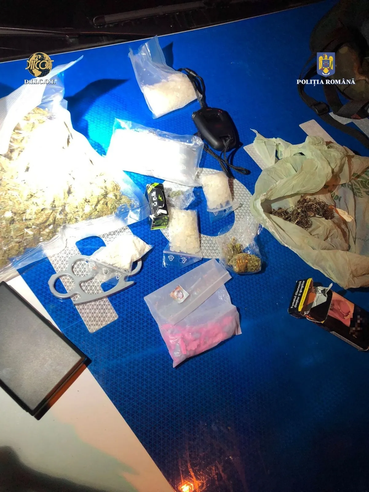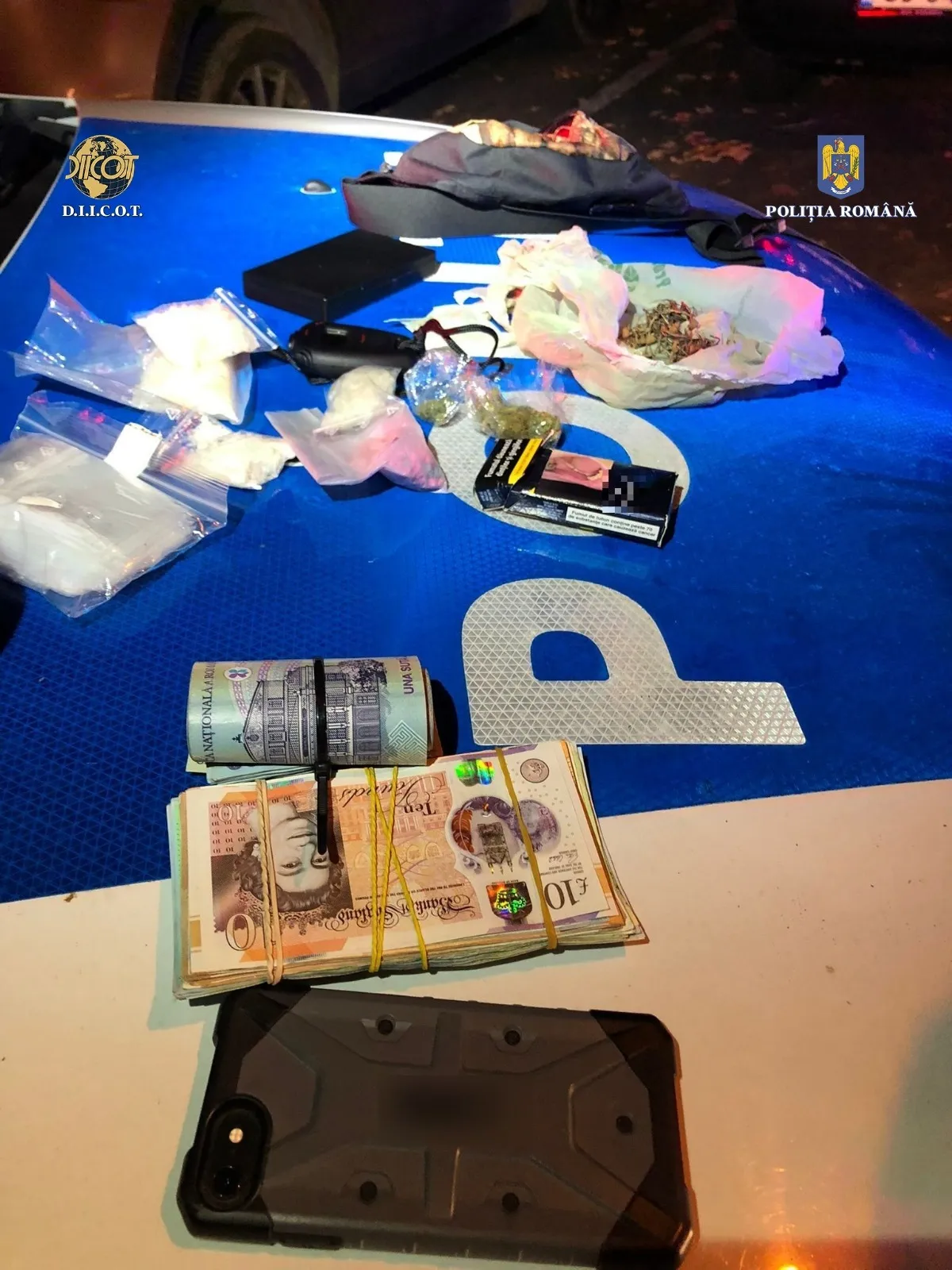 Astfel că, în urma controlului, au fost descoperite două borsete, un ghiozdan și un pachet de țigarete, în care s-ar fi aflat mai multe plicuri cu substanță susceptibilă de a avea efecte psihoactive, 250 de grame de cannabis, un cântar electronic, ciuperci halucinogene, 11.650 de lei, 270 de euro și 30 de lire sterline.