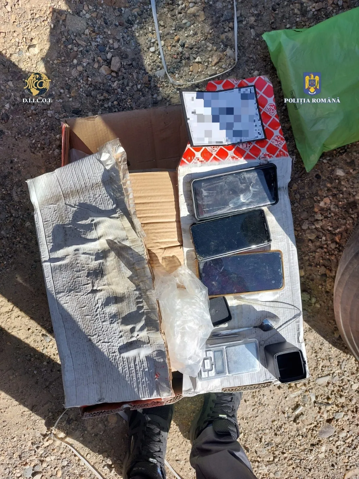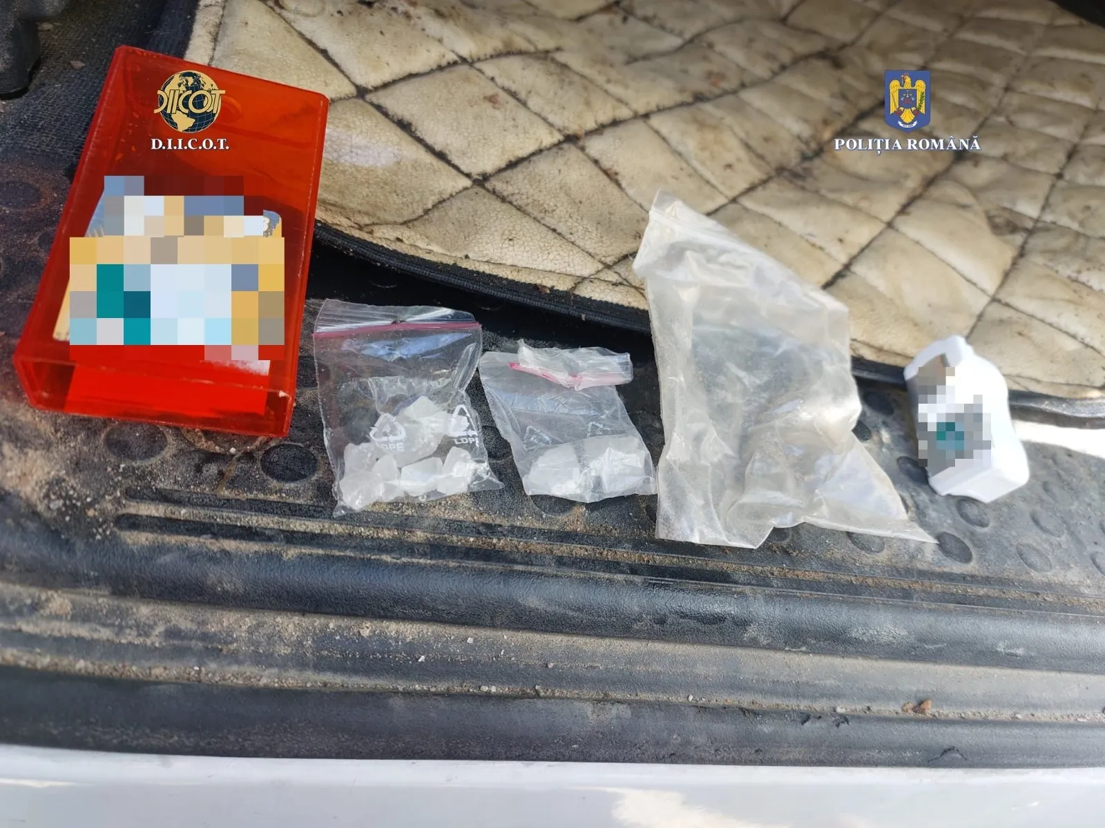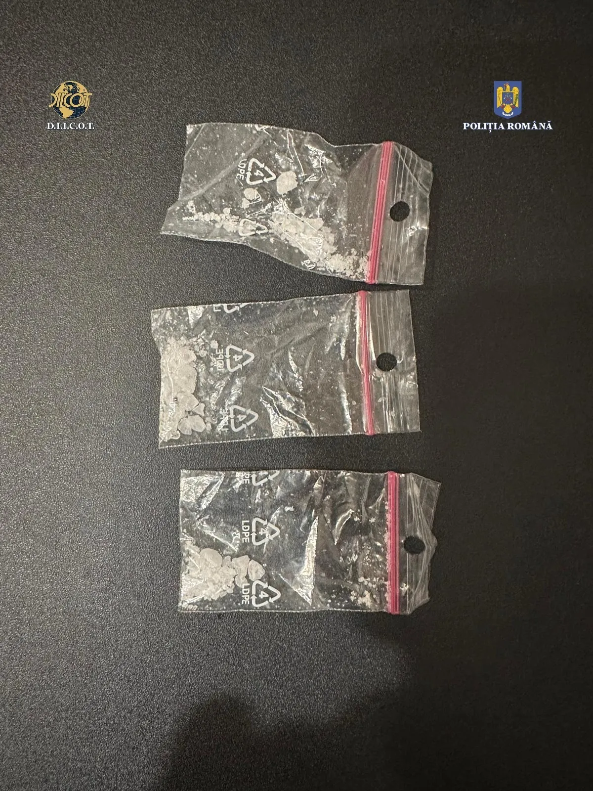 În urma perchezițiilor, au fost descoperite 8 pungi de substanță pulverulentă de culoare albă, însumând cantitatea totală de aproximativ 50 de grame, 10 telefoane mobile, două cântare de mare precizie și mai multe ustensile utilizate pentru consum, cu urme de substanță.