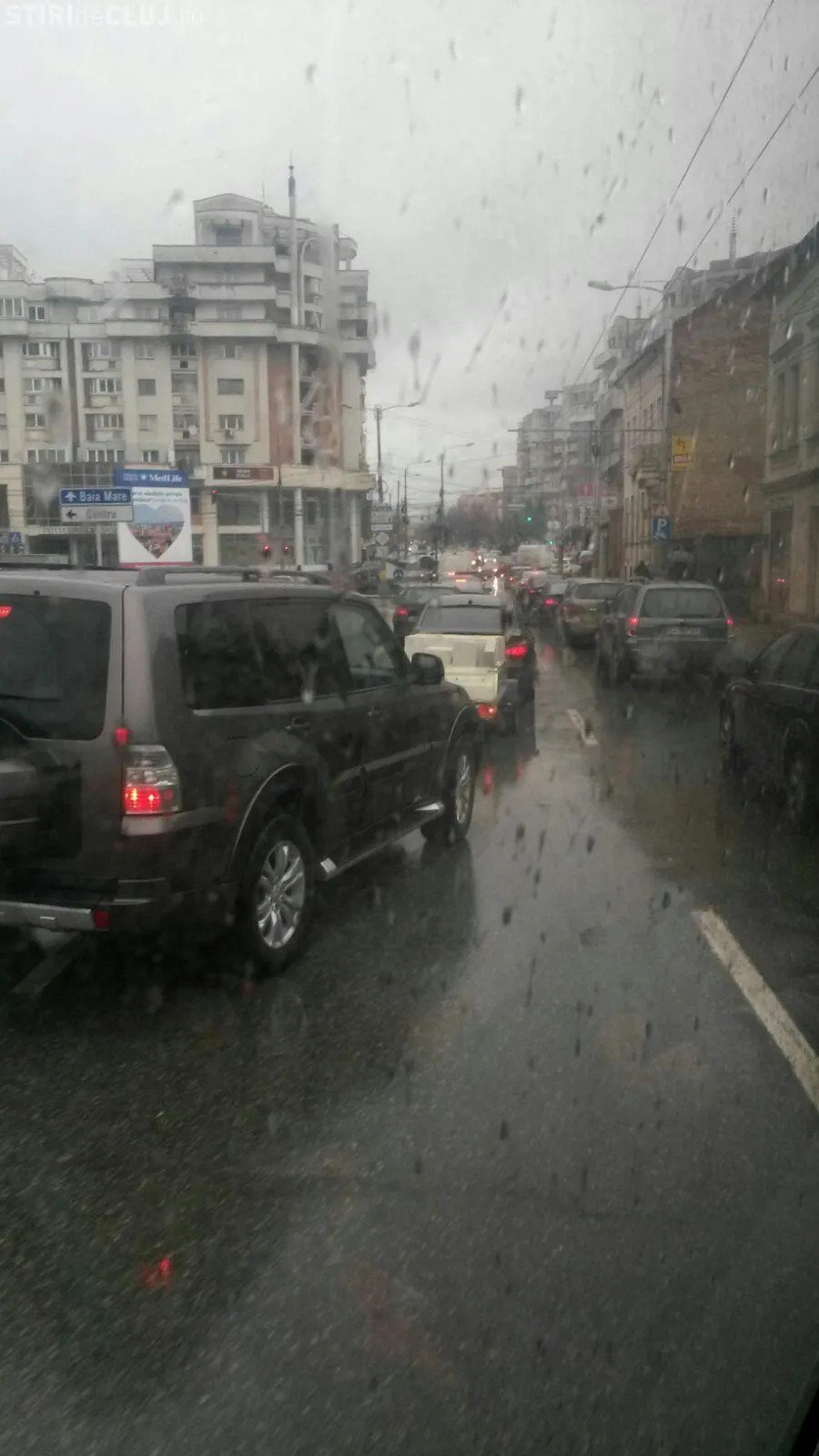 Traficul în centrul Clujului, paralizat de ploaie FOTO