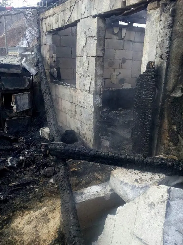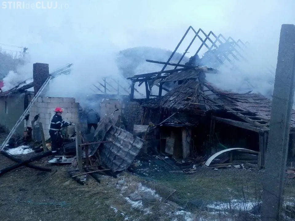 Tragedie la o localitate din Cluj. O familie a rămas fără locuință după ce aceasta a ars complet FOTO