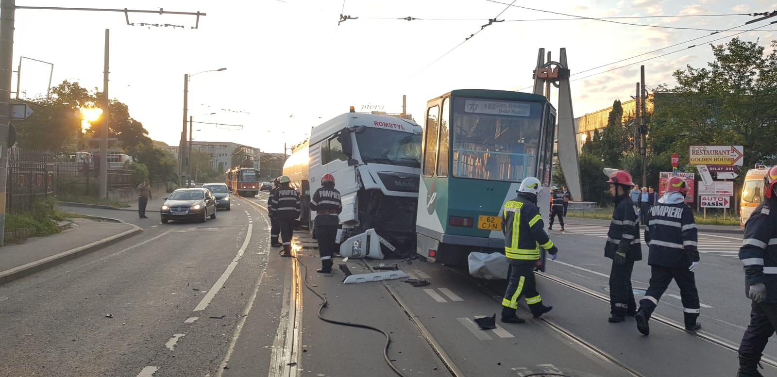 Un conducator auto de 55 ani din Cluj-Napoca a condus autoturism pe strada Fabricii de Zahăr și ajuns la intersecție cu B-dul Muncii unde a pătruns în intersectie fără să acorde prioritate unei autocisterne, care era condusă înspre strada Oasului de un bărbat de 32 ani din Hidiselu de sus, judetul Bihor, si care, pentru a evita impactul cu autoturismul, franeaza brusc, aluneca pe sina de tramvai si pătrunde pe sensul opus unde intra in coliziune cu un tramvai, condus de un bărbat de 59 de ani din Cluj-Napoca înspre depou.