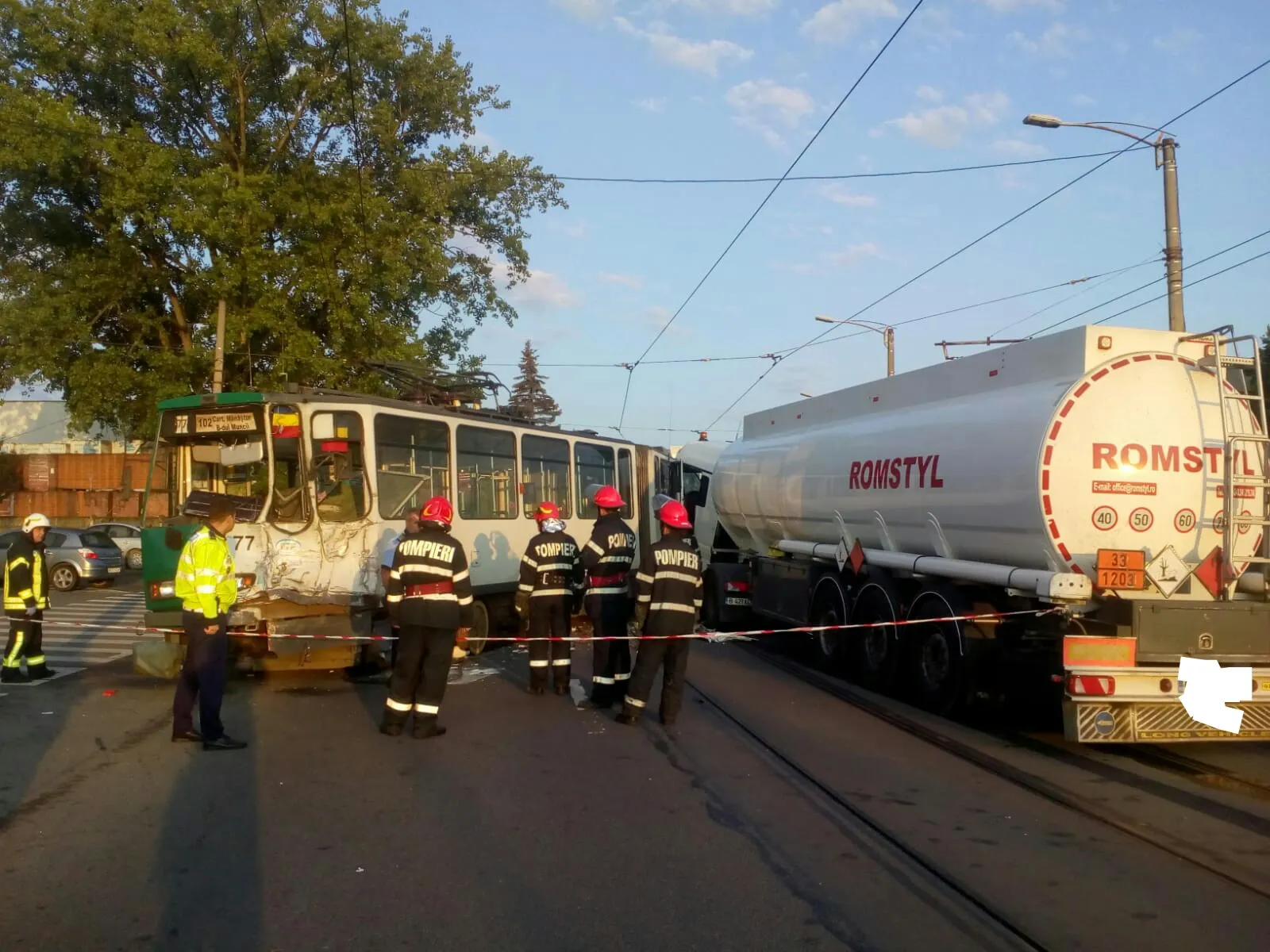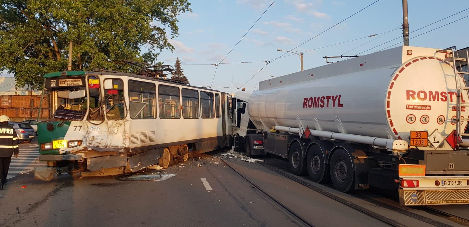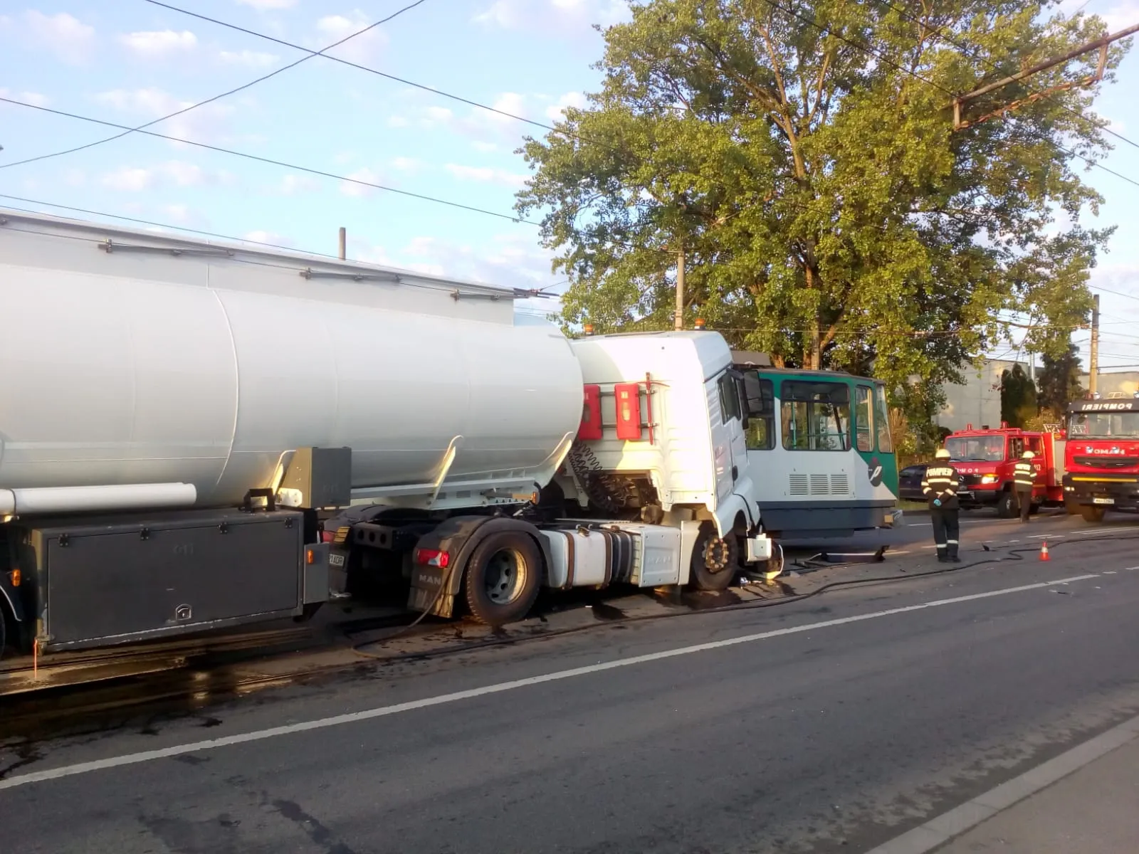 Tramvai deraiat pe Bulevardul Muncii! L-a lovit o cisternă - FOTO
