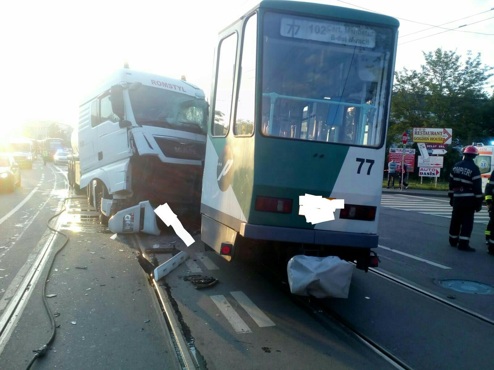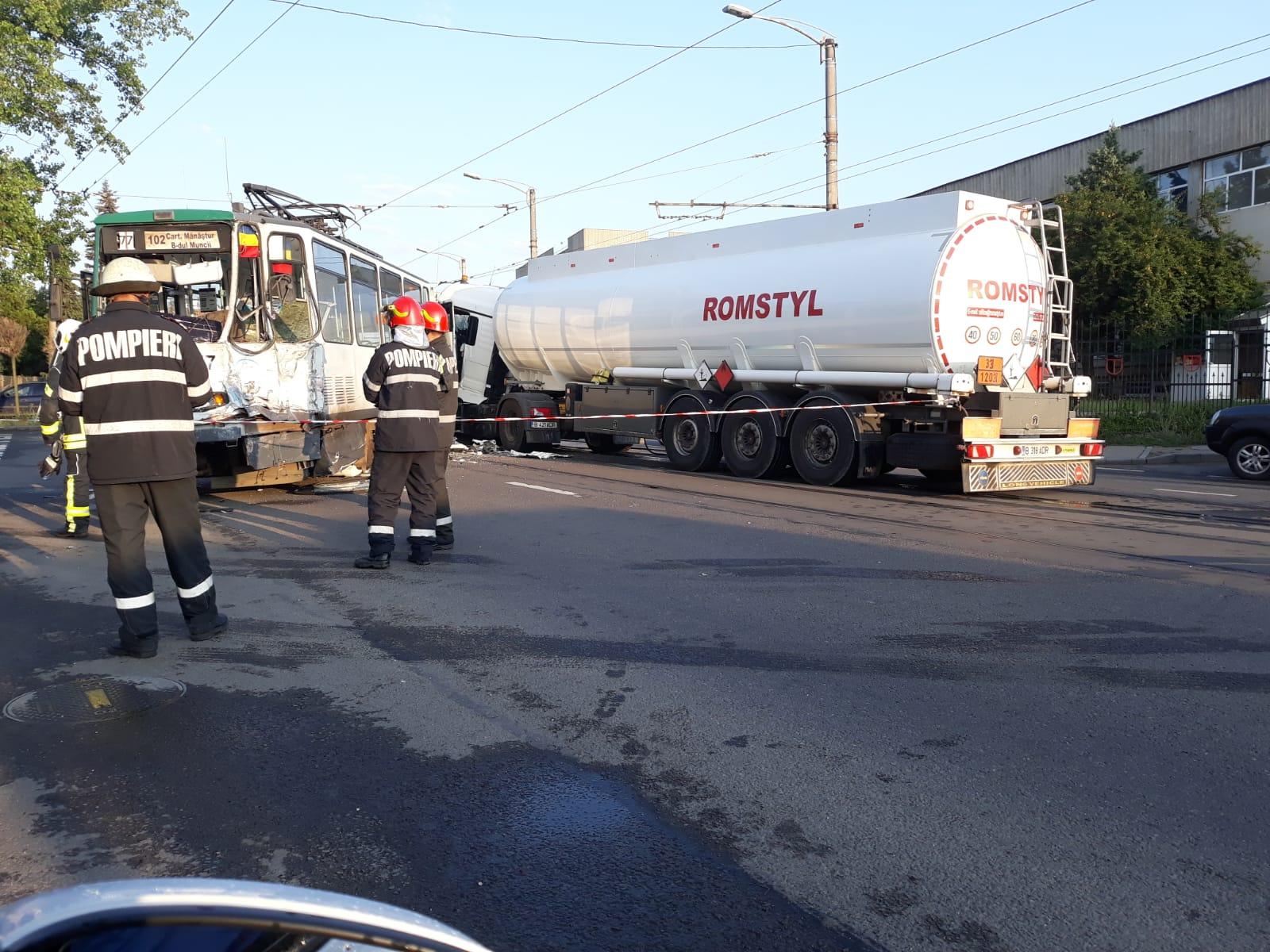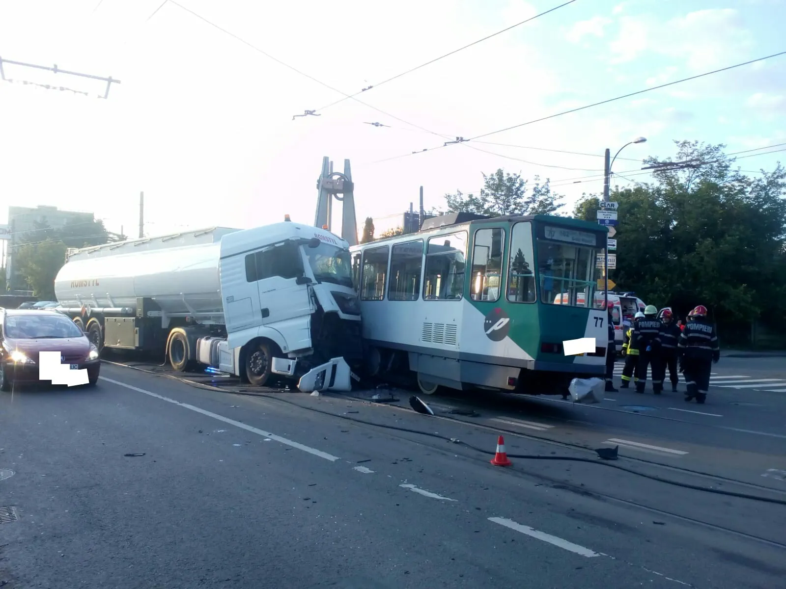Tramvai deraiat pe Bulevardul Muncii! L-a lovit o cisternă - FOTO