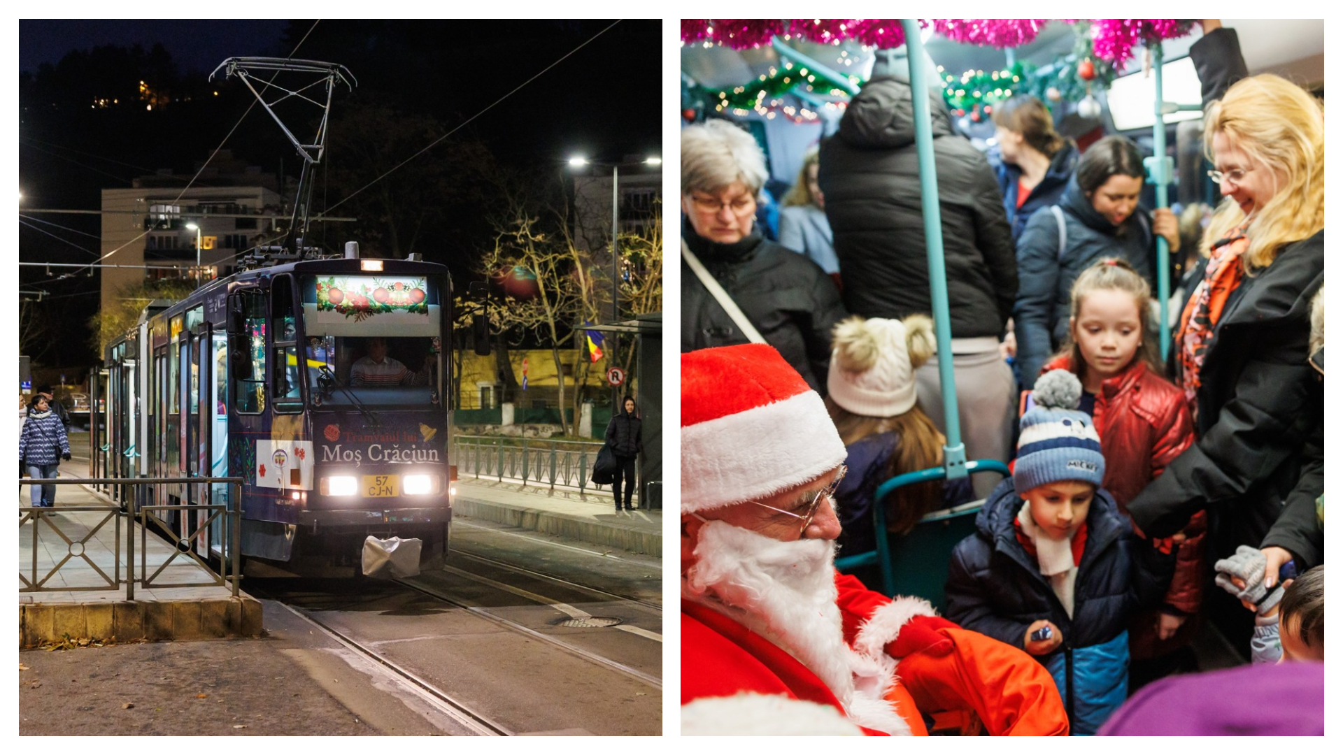 ,,Hai cu Tramvaiul lui Moș Crăciun din Cluj-Napoca și vei avea parte de o călătorie într-o atmosferă de Sărbătoare, plină de zâmbete, dulciuri, colinzi și surprize”.