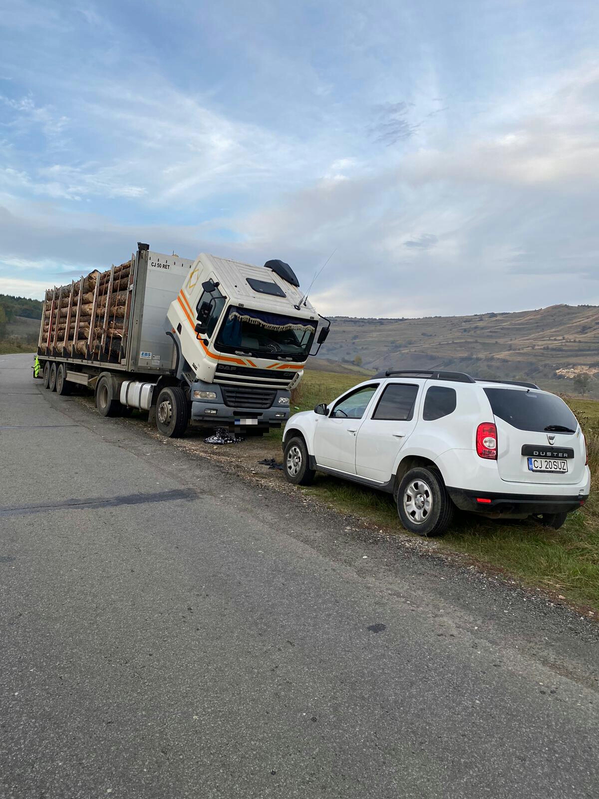 La scurt timp, pe raza aceleiași localități a fost identificat un alt ansamblu de vehicule, care era încărcat cu material lemnos, parcat pe acorstamentul carosabilului, fără ca în zona acestuia să poată fi identificat conducătorul vehiculului.