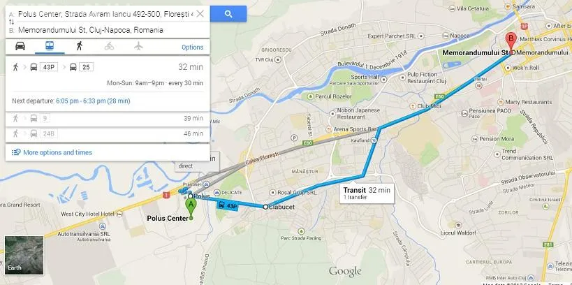 Transportul public din Cluj-Napoca și alte 6 orașe din România este disponibil de acum și în Google Maps.