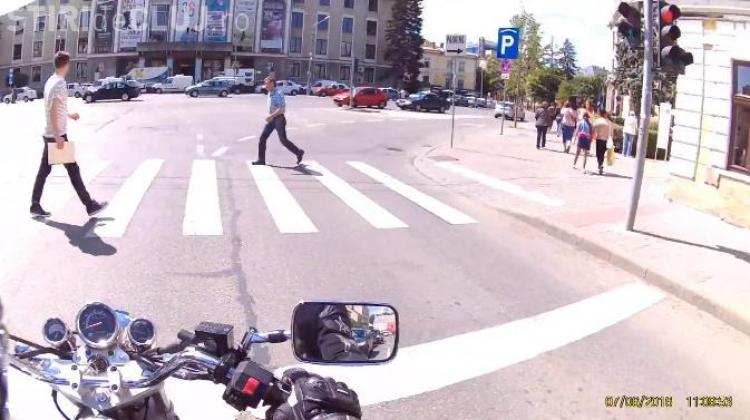 Un motociclist a fost la un pas să fie spulberat de o șoferiță în Piața Lucian Blaga, fosta Piața Păcii.