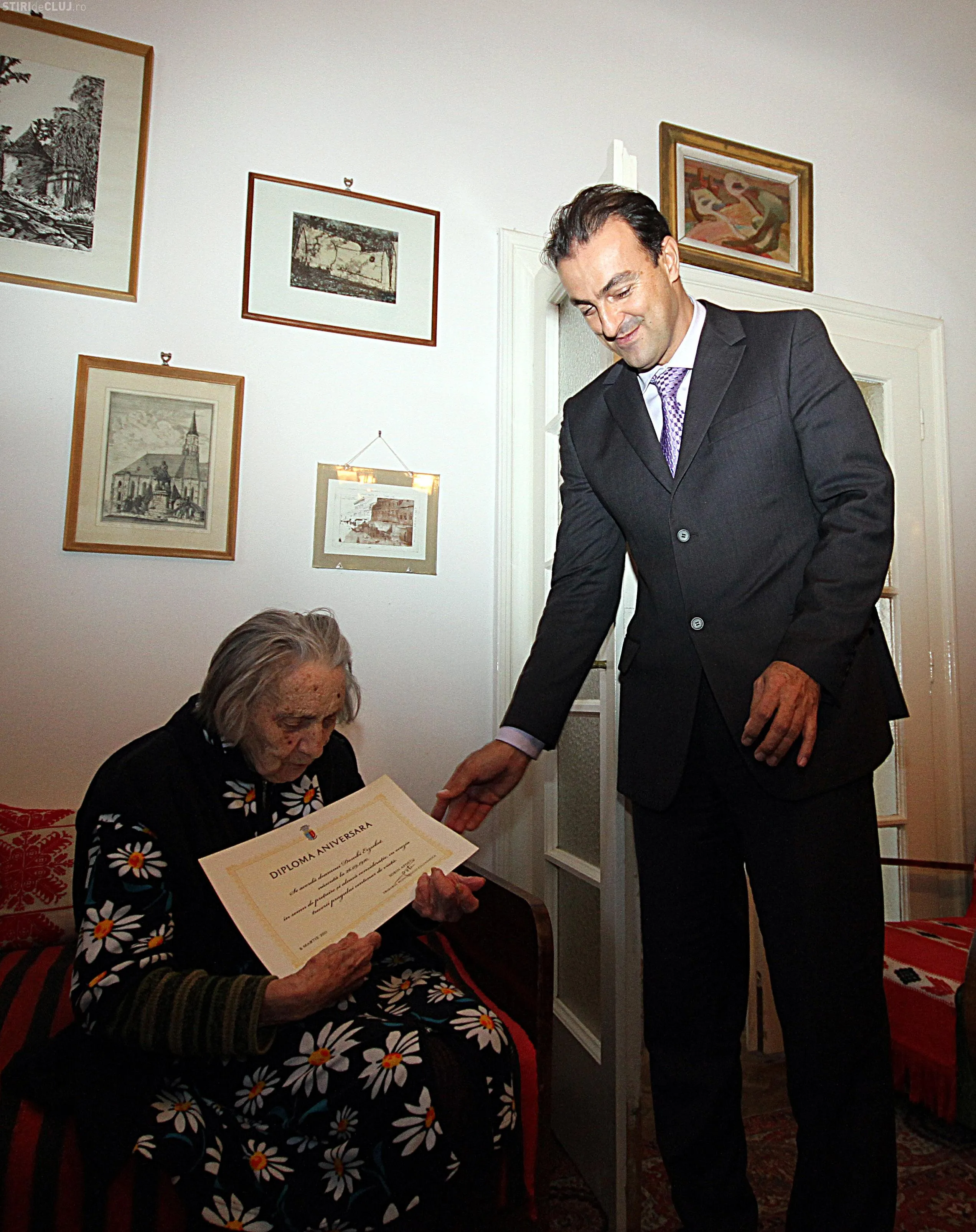 Trei clujence care au implinit varsta de 100 de ani au primit astazi cate un premiu de 2.000 de lei din partea Primariei Cluj-Napoca.