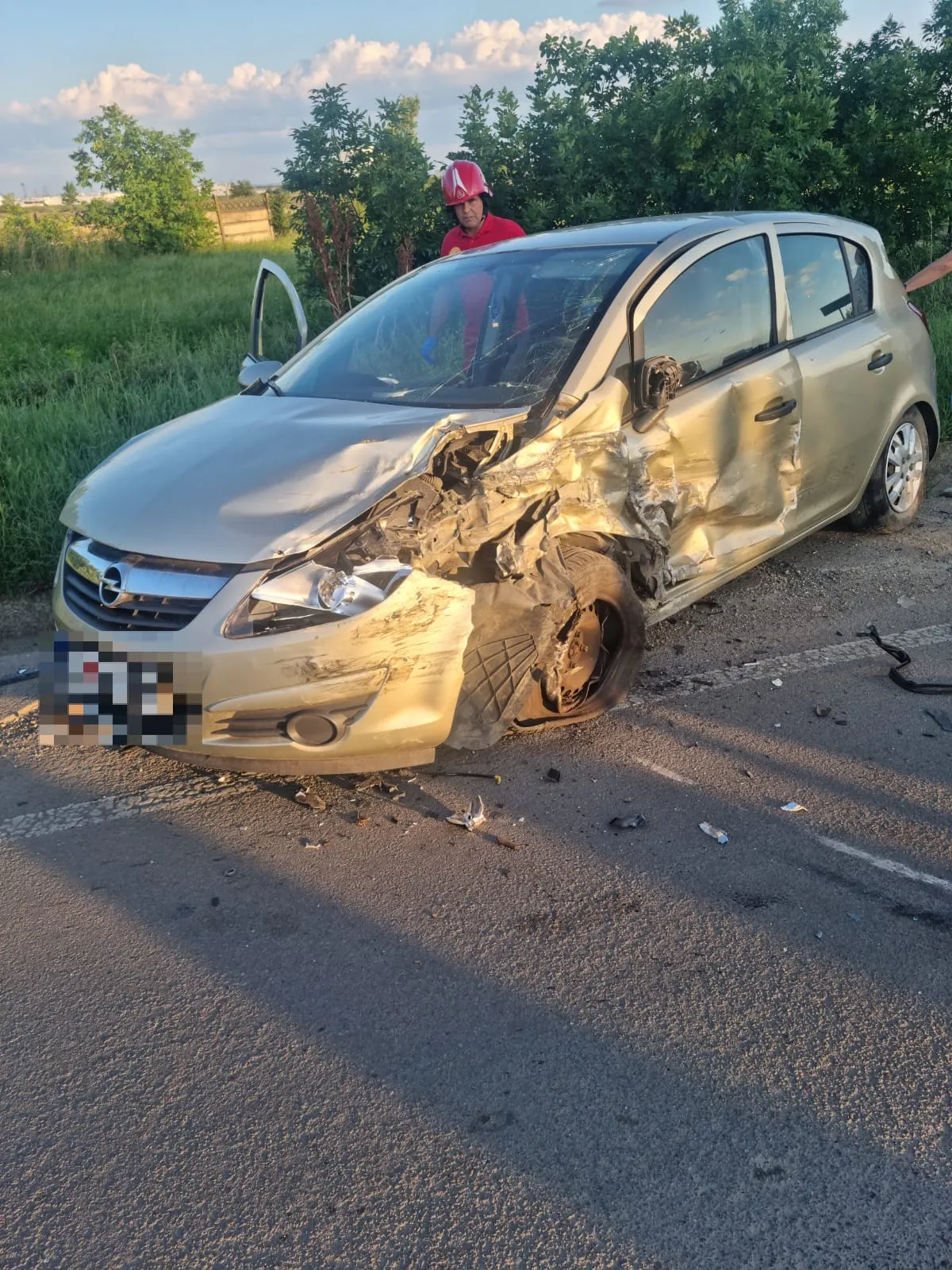 ”Echipajele noastre au găsit la fața locului trei autoturisme avariate, dintre care unul răsturnat. În autoturismul răsturnat se afla încarcerat un tânăr de aproximativ 18 ani. Acesta a fost extras de pompieri și predat echipajelor medicale. La o primă evaluare, victima prezenta o fractură deschisă de femur, fiind conștientă. Tânărul a fost transportat imediat la spital de către ambulanță”, precizează salvatorii.