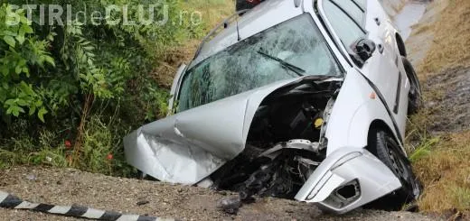 Trei studenți clujeni au făcut accident în timp ce veneau la facultate să dea un examen. Au plonjat cu mașina într-un podeț FOTO