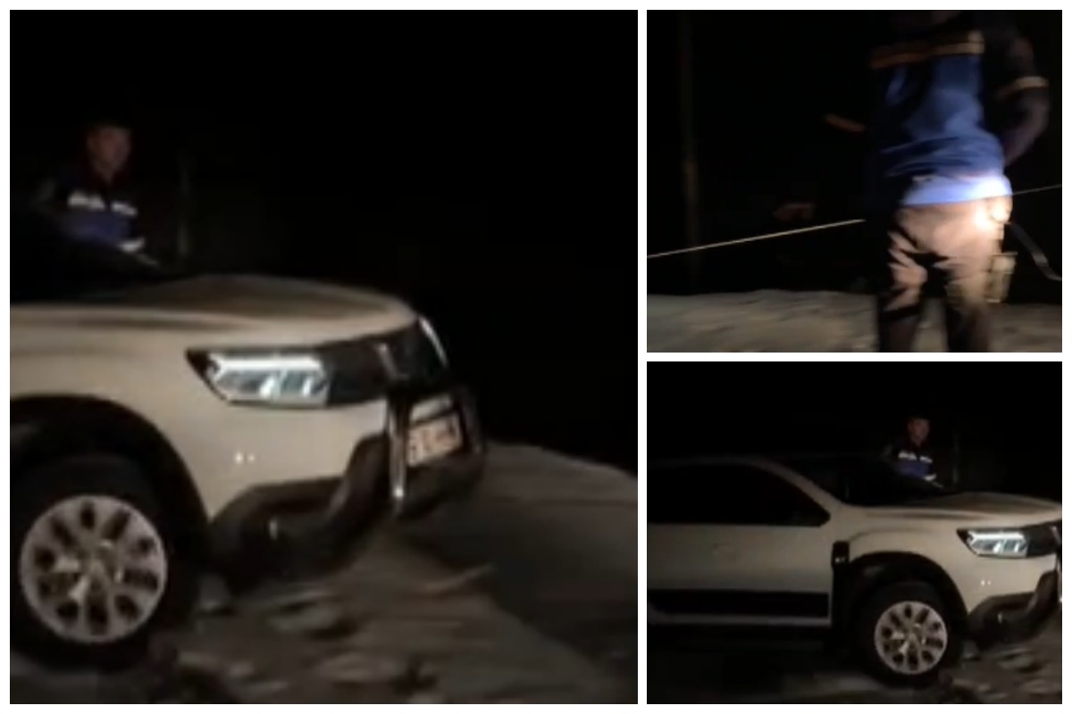 Trei turişti au rămas blocaţi cu maşina pe un drum îngheţat din Cluj, după lăsarea serii! Au fost salvați de jandarmi - VIDEO