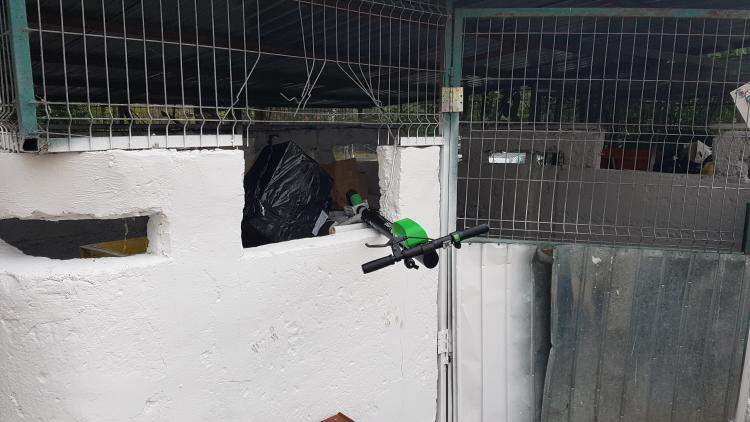 Vineri dimineața, o trotineta electrica era aruncata in tomberonul de pe Aleea Alverna, fiind cel mai probabil avariată.