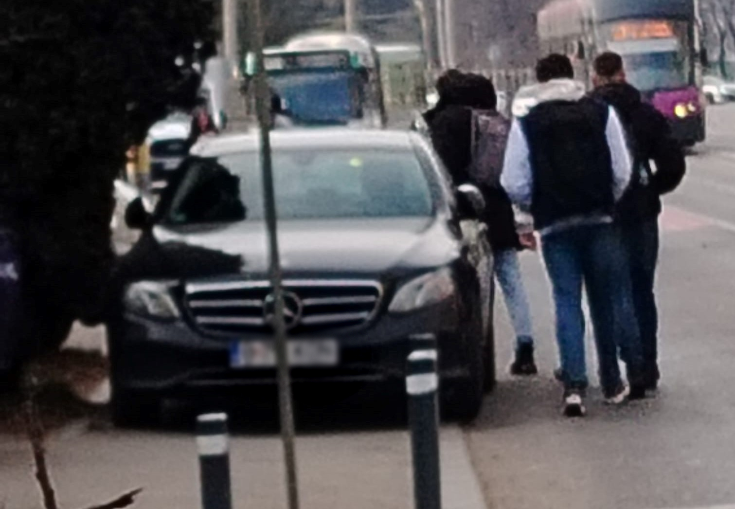 Mașina, parcată pe drumul destinat pietonilor, pune viața în pericol a celor care terc pe acolo. În fotografia postată pe rețelele sociale se poate observa cum un grup de elevi au fost nevoiți să ocolească vehiculul și să pășească pe carosabil pentru a-și continua drumul.