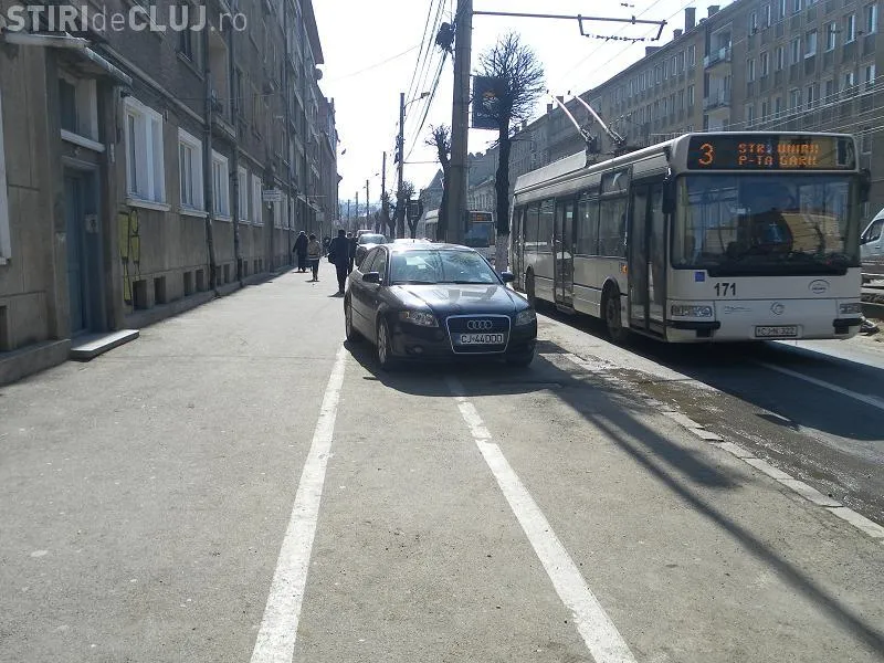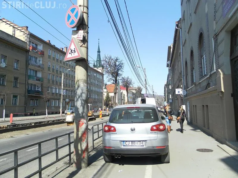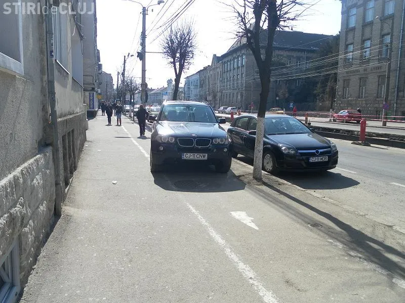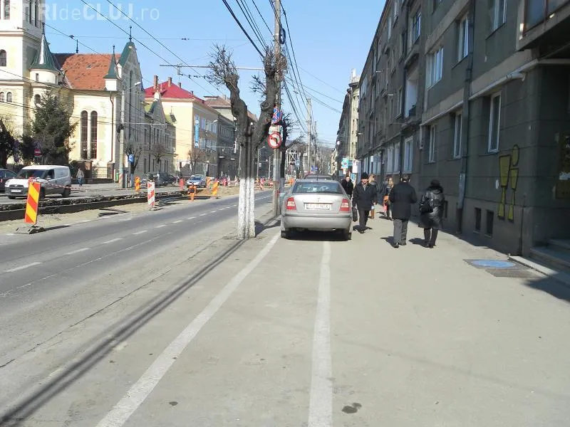 O data cu demararea lucrarilor la linia de tramvai pe strada Horea, soferii au fost nevoiti sa isi parcheze autoturimele pe trotuare.