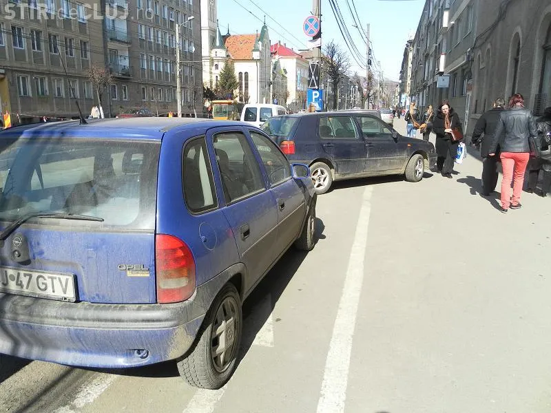 Trotuarele de pe strada Horea, intesate cu masini FOTO