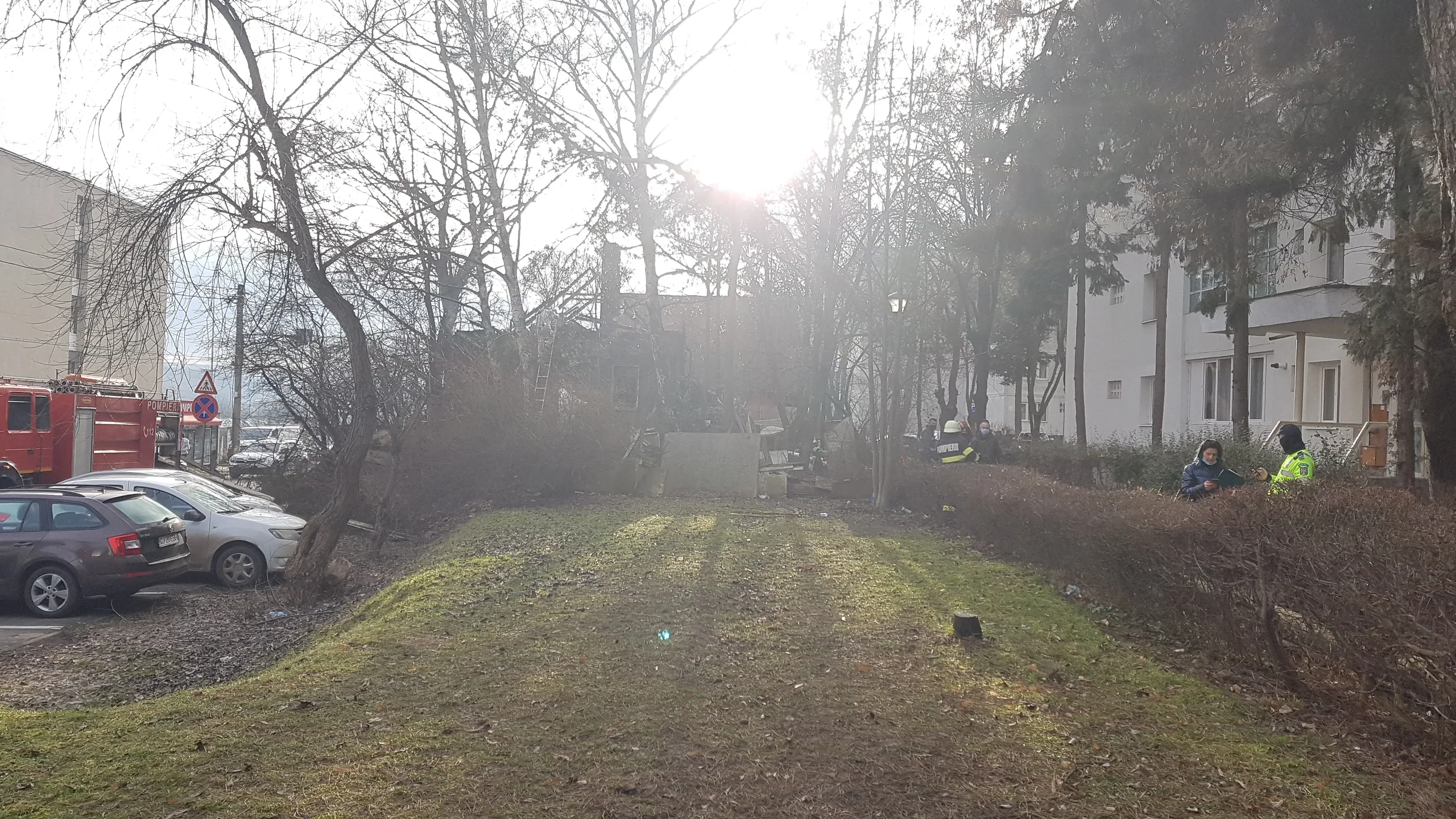 Reporterul Știri de Cluj a filmat vineri dimineața la locul incendiului iar inspectorul de poliție din imagini a intervenit pentru a interzice acest lucru. Nu purta masca, după cum nu purta nici când lua datele celor care treceau pe aleea de langa casa care a ars.
