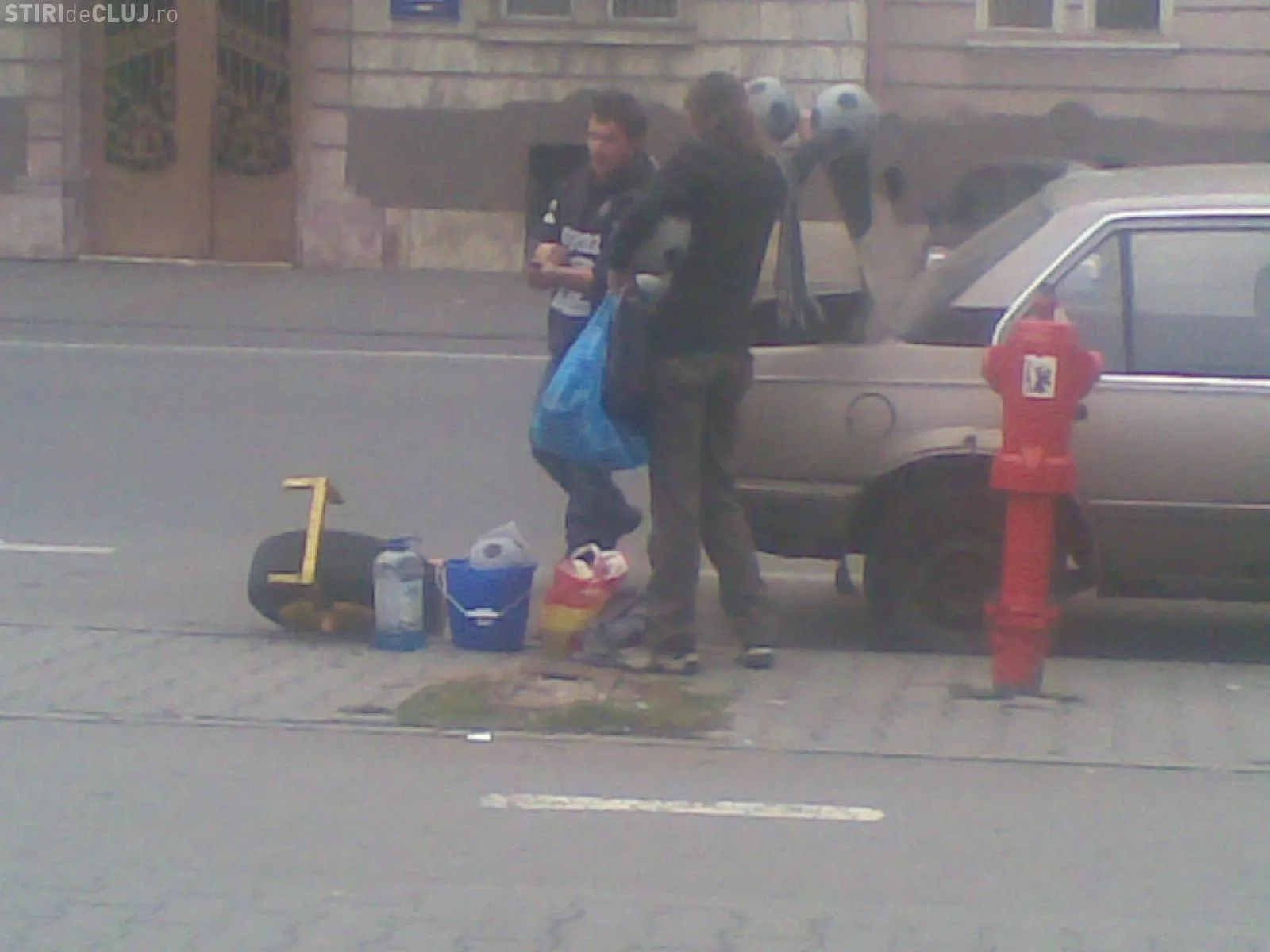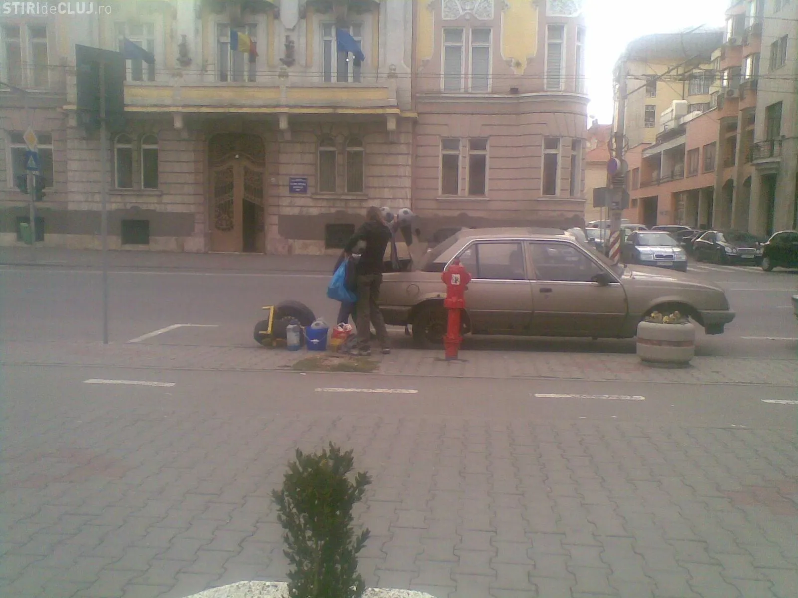 Tupeu de sofer! Si-a demontat roata blocata chiar sub ochii jandarmilor de la Prefectura Cluj FOTO