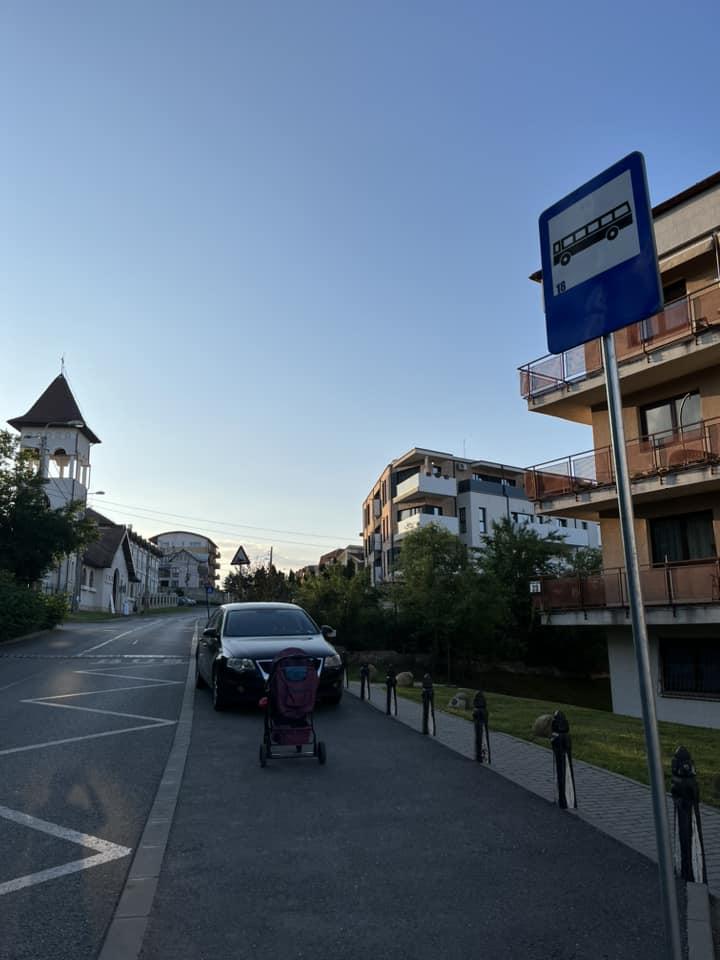 Tupeul șoferului nu a rămas nesancționat de locuitorii din zonă care au și arătat cum, cu un cărucior pentru copii, efectiv nu ai cum să treci de mașina parcată pe trotuar, fix în stația de autobuz.