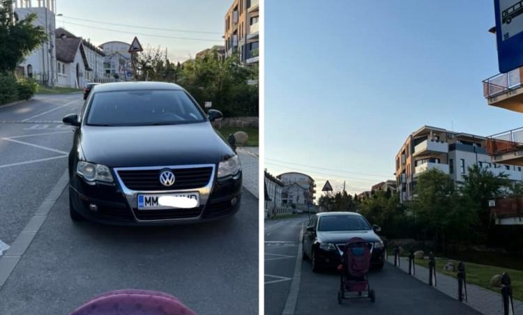 Un șofer din Maramureș a reușit să enerveze clujenii după ce și-a parcat Volkswagenul pe trotuar, în stația de autobuz. Mașina ocupa efectiv tot trotuarul din dreptul uneia dintre stațiile de autobuz pentru linia 18 a Companiei de Transport Public Cluj-Napoca(CTP).