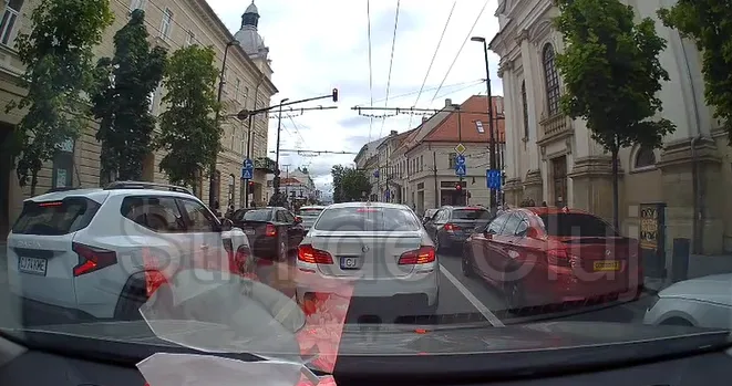 Scenă de râs dacă nu ar fi de plâns, sâmbătă, 24 mai 2025, în centrul Clujului, la intersecția de la Melody. Doi șoferi de BMW au decis să-și etaleze „caii putere” chiar la semafor, în mijlocul orașului, turând motoarele agresiv, de parcă s-ar fi aflat pe un circuit de raliu, nu în traficul urban.