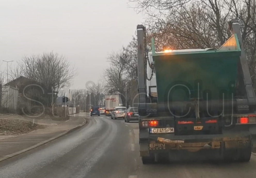 Pericol pe Calea Someșeni din Cluj! Un șofer de TIR din Bihor oprește înainte de curbă, blochează circulația și îi pune pe toți participanțăă la trafic în pericol