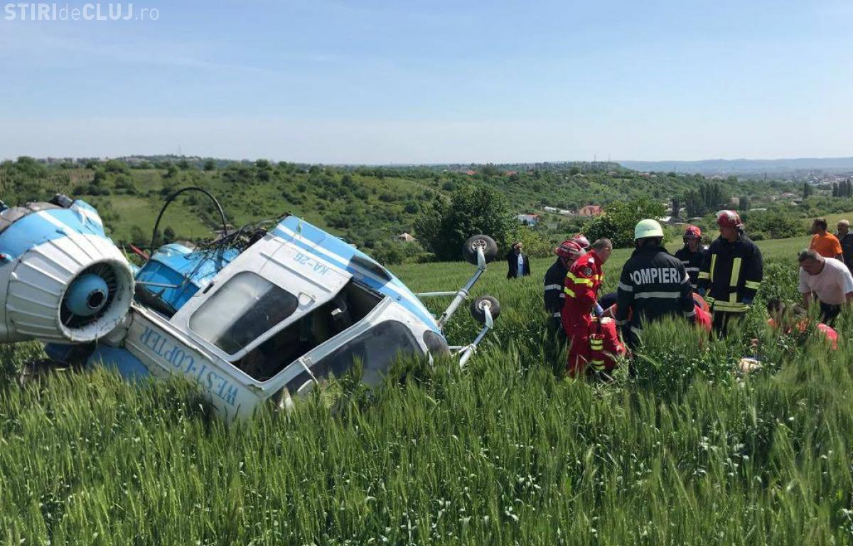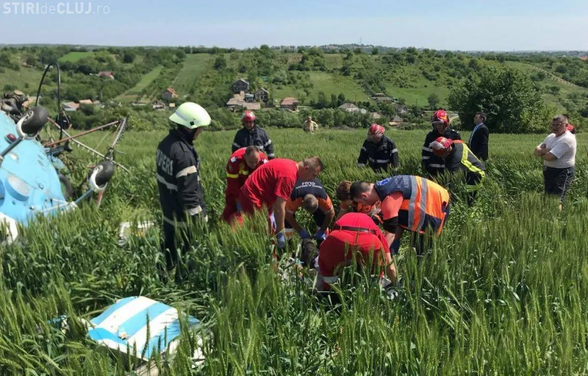 ”În urma evaluării medicale, unul dintre cei doi ocupanți ai elicopterului va fi transportat la spital, pentru investigații suplimentare. Bărbatul este conștient și prezintă leziuni care nu ii pun viata în pericol”, anunță ISU Cluj.