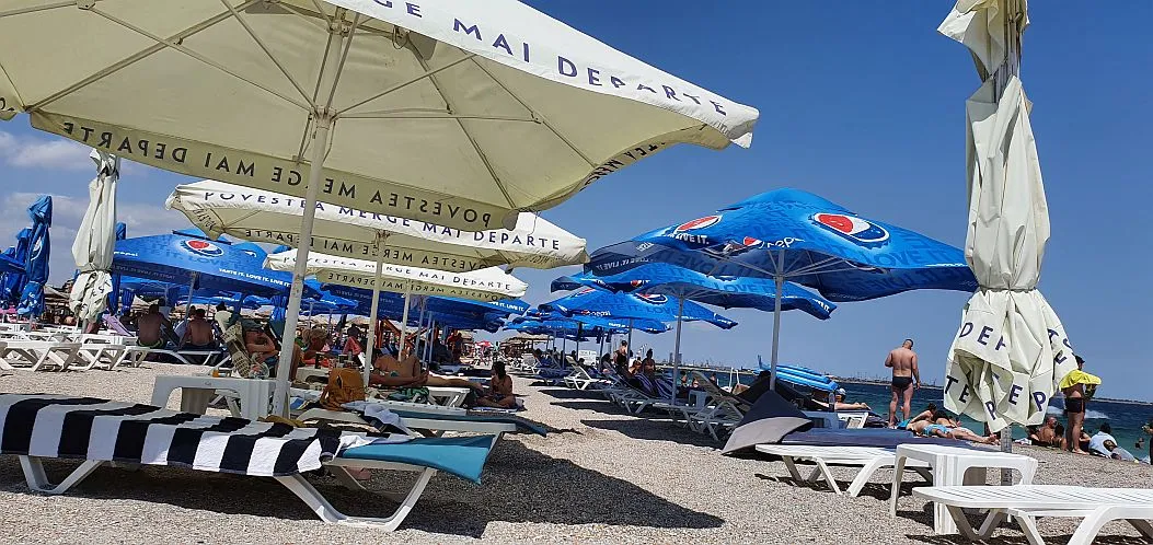 Șezlongurile sunt mai ieftin, dar depinde de rând. În plus au și umbrele. Prețurile încep de la 150 de lei șezlongurile din rândul 1, , din spatele cearceafurilor, 12 de lei dele din rândul al doilea și 100 de lei cele din rândul al treilea, deci la circa 15 -20 de metri de plajă.