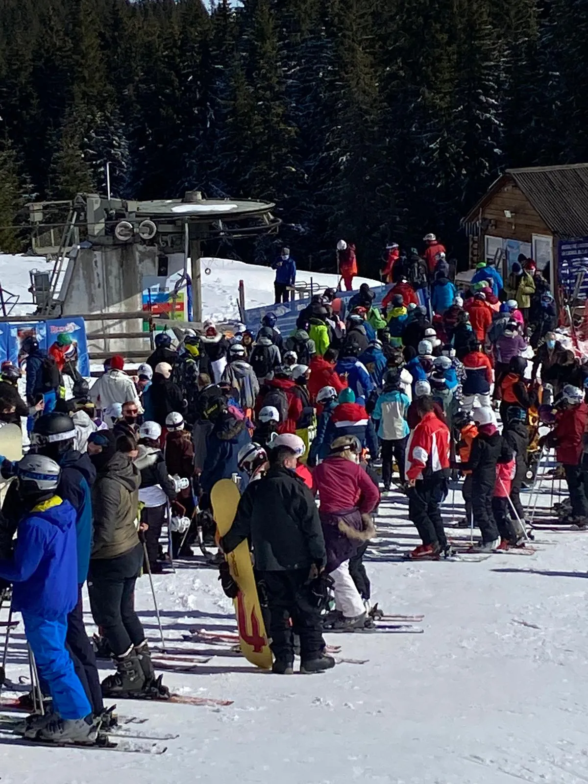 Totul a fost în regulă, în pofida cozii de la telescaun, care se lungea treptat. Și aici au apărut problemele. Mai bine zis au apărut specialii: persoane care ocoleau nonșalant atât coada - care ajunsese deja la 30+ minute -, cât și porțile de acces.