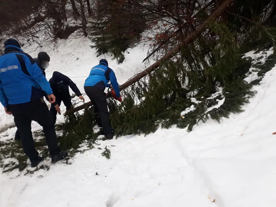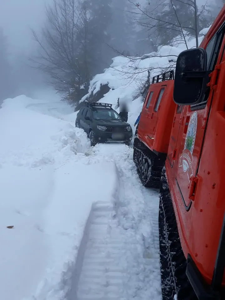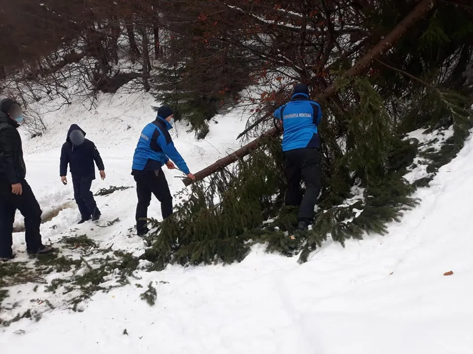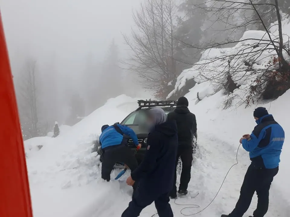 Viscolul a rupt brazii și nu s-a mai putut înainta cu autoturismul. Turiștii au plecat de la o cabană din Valea Blaznei și se îndreptau spre casă.