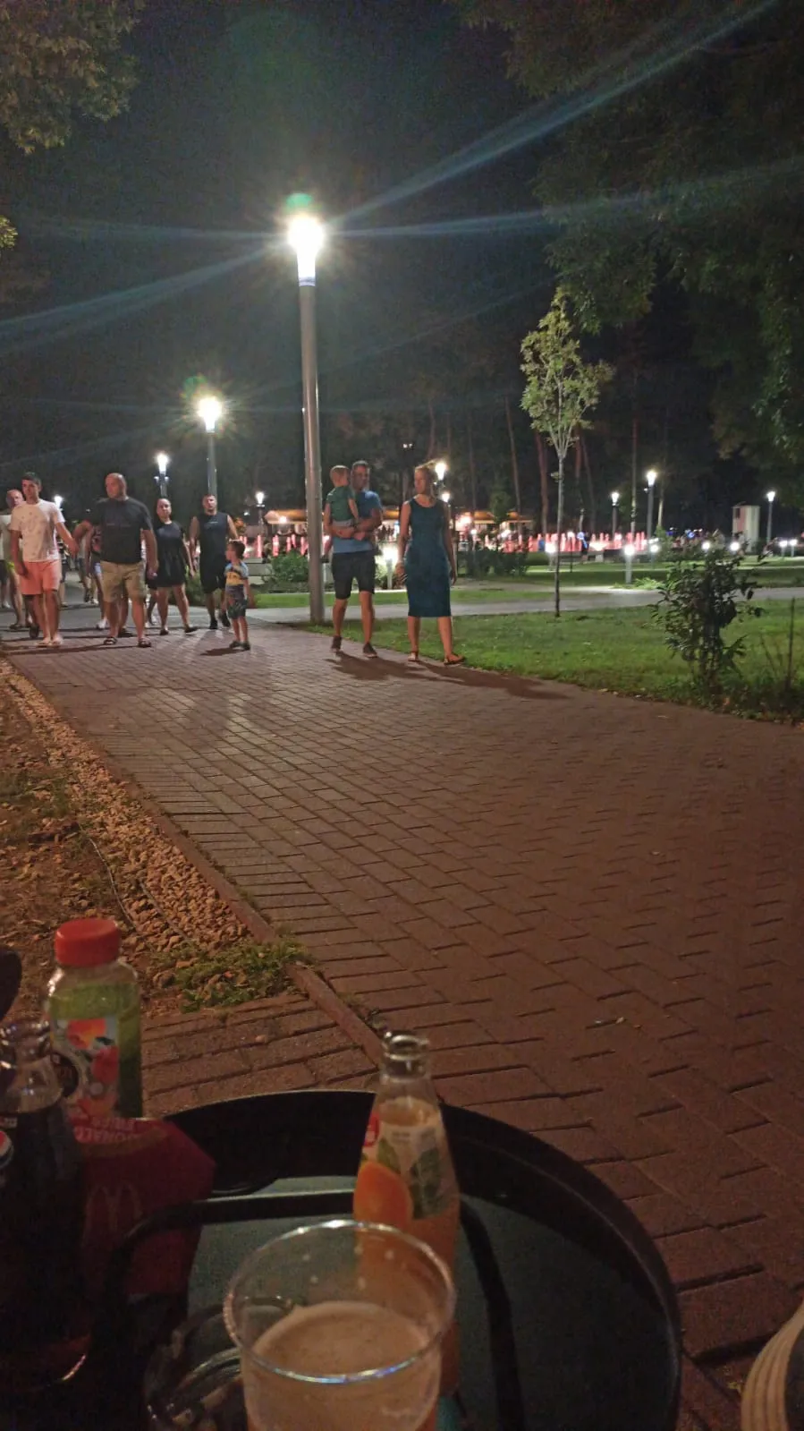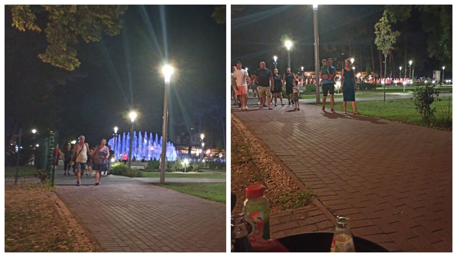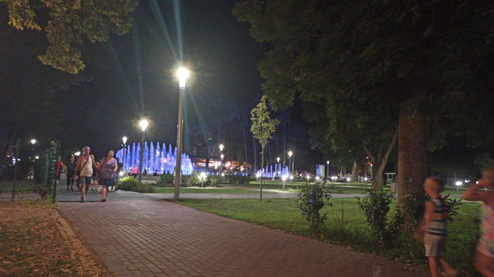 Parcul din Nyiregyhaza este plin sâmbătă seara de familii aflate în vacanță, este perfect luminat. Totul pare a fi făcut pentru ca oamenii să se simtă foarte bine. Sunt locuri cu măsuțe unde pot fi aduse băuturi e acasă, ca toți să fie fericiți. Desigur, lipsesc băncile cu încărcare pentru mobile.