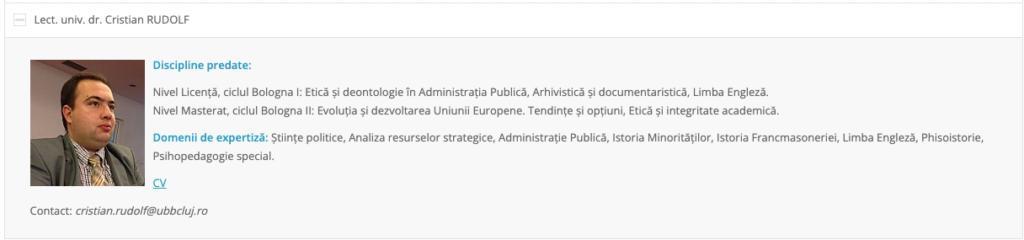 „Universitatea Babeș-Bolyai (UBB) l-a concediat în 23 martie 2023 pe lectorul Rudolf Cristian din Centrul Universitar UBB Reșița, procedând la desfacerea contractului de muncă și excluzându-l astfel din comunitatea academică a UBB în contextul abaterilor de la etică, integritate și bune practici academice pentru care este anchetat, aspecte care sunt incompatibile cu valorile UBB și cu buna derulare a activităților academice la UBB.