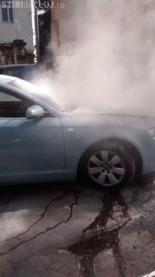 Un Audi A6 s-a aprins în parcarea de pe Avram Iancu. Puteau arde toate mașinile - FOTO