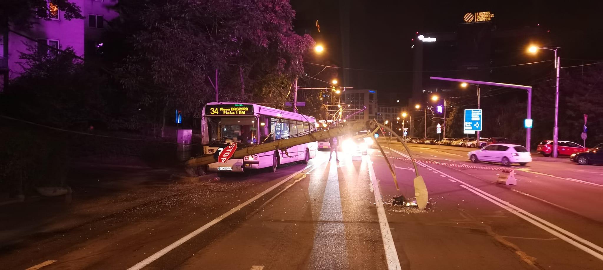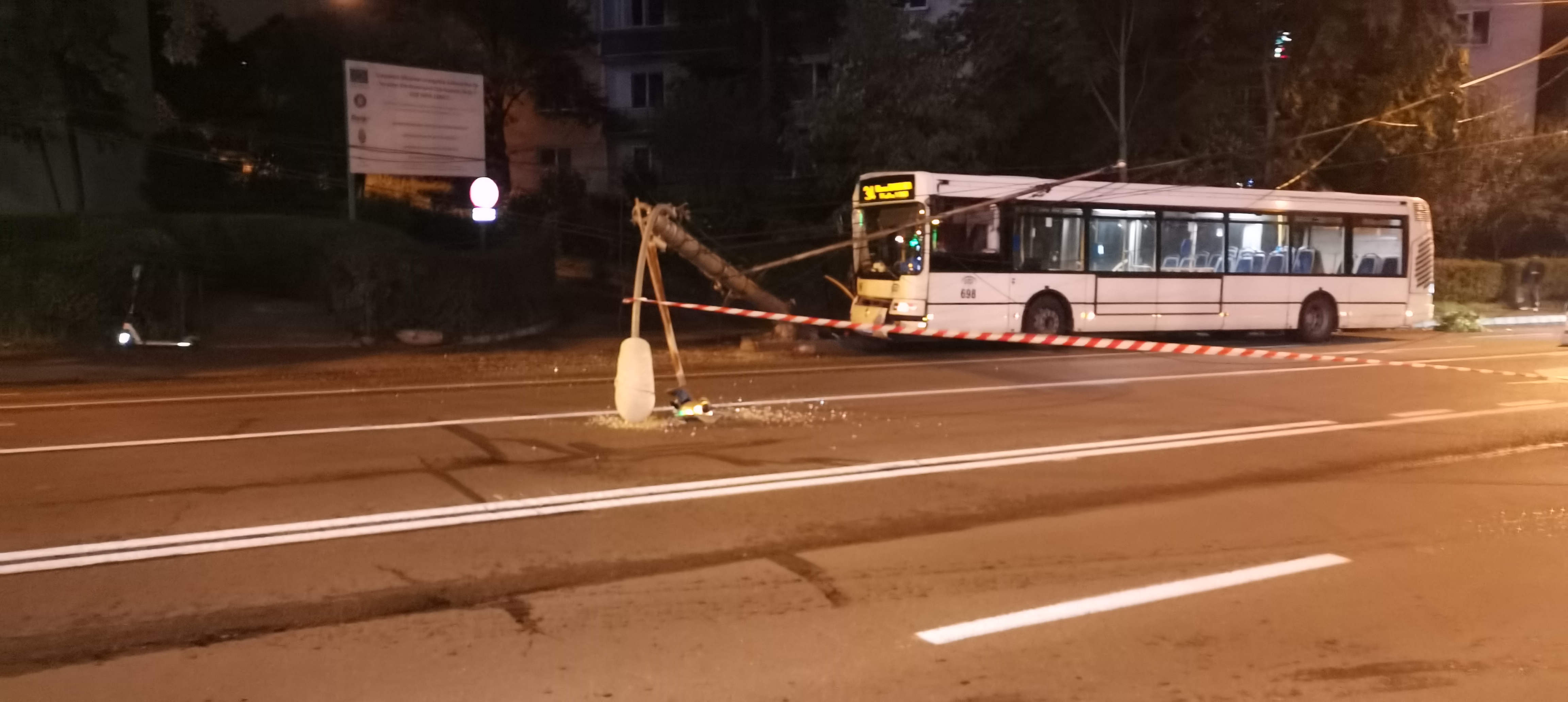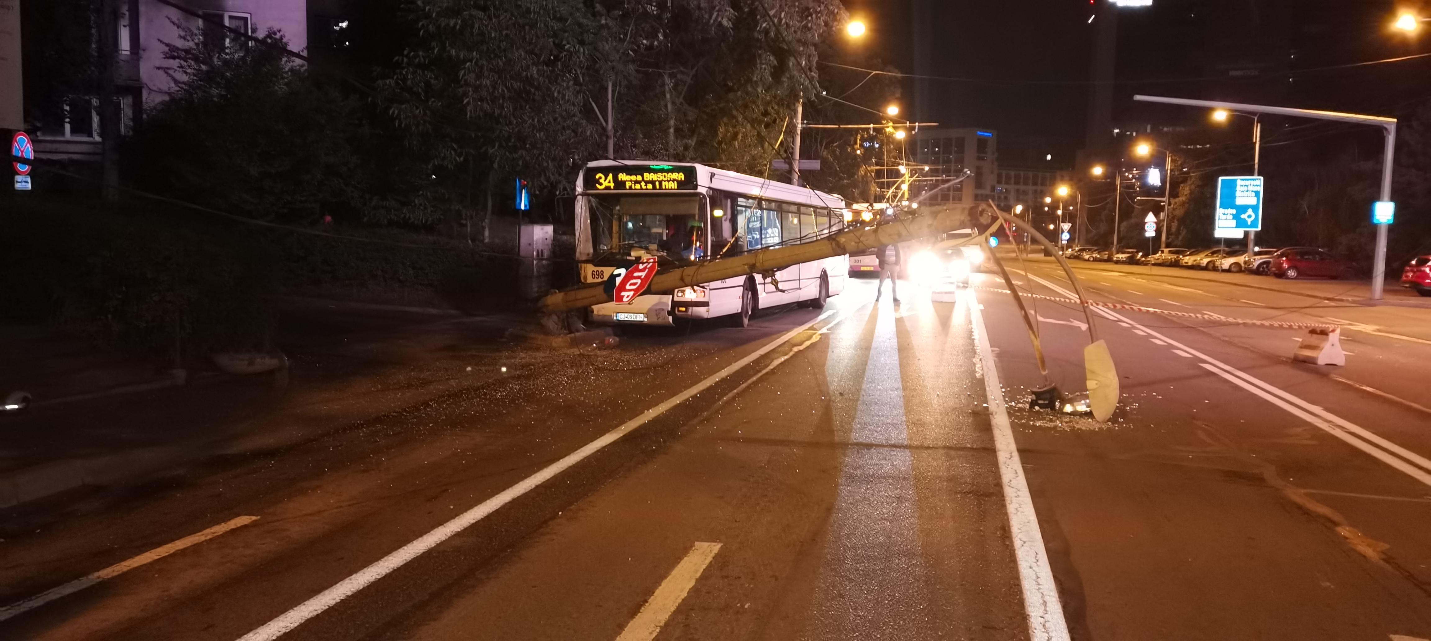 Din primele informații, un trotinetist ar fi ieșit în fața autobuzului. Încercând să-l evite, șoferul a pierdut controlul direcției de mers și a intrat în coliziune cu un stâlp de iluminat public.