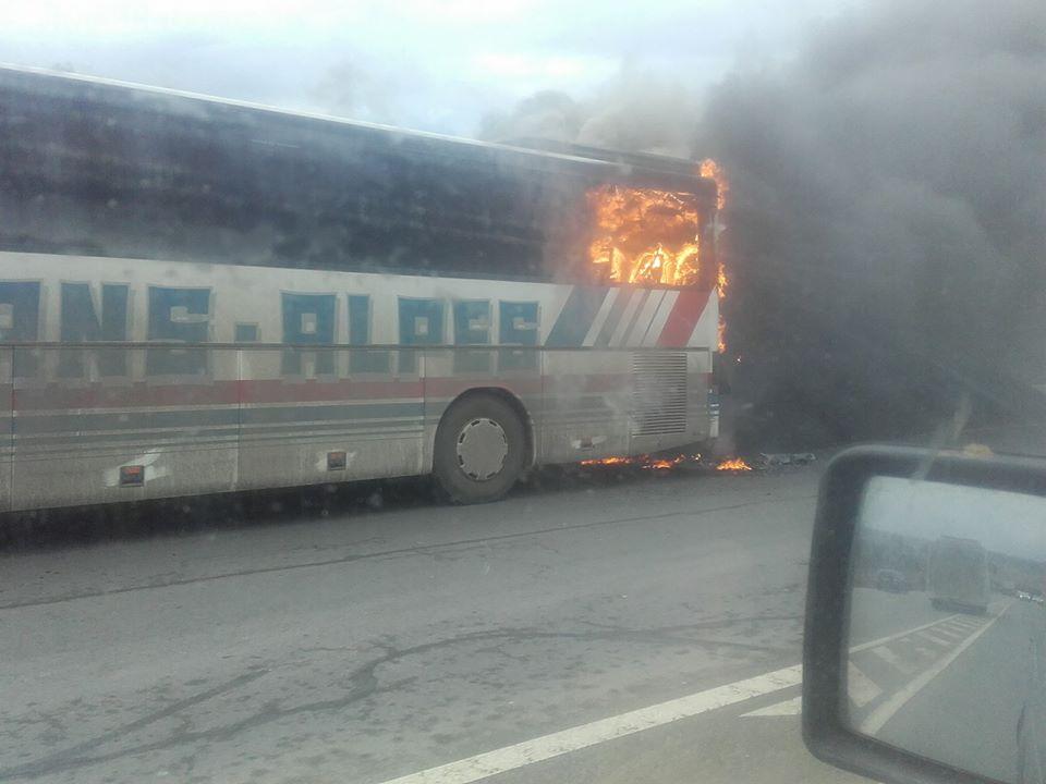 Un autocar a luat foc pe Dealul Feleacului - VIDEO / FOTO