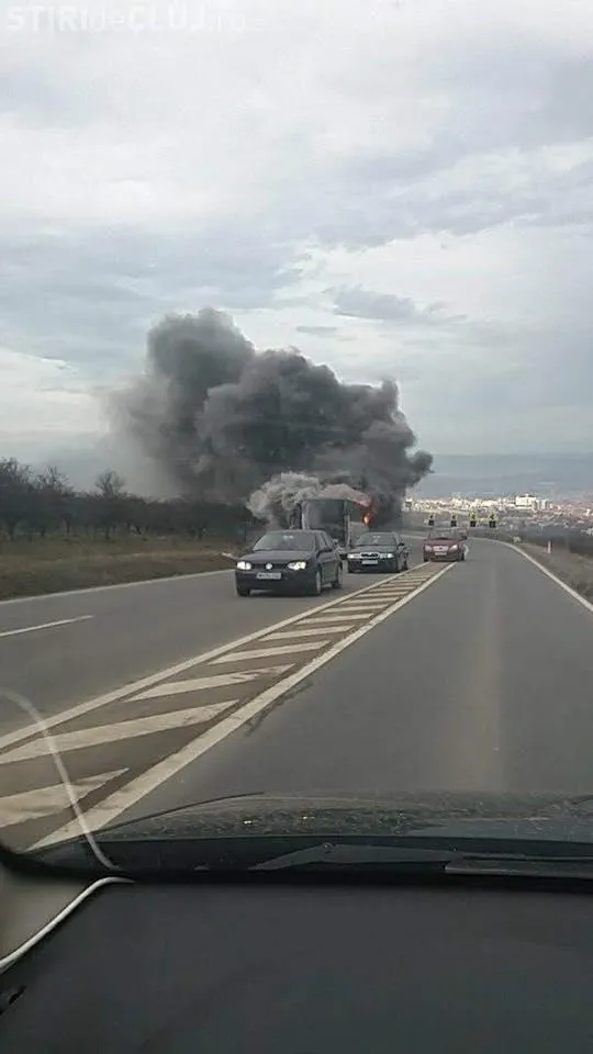 Un autocar a luat foc pe Dealul Feleacului, luni, 12 martie, în jurul orei 14:40.