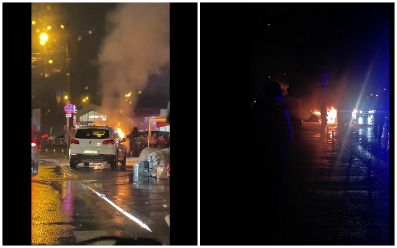 Un autoturism a luat foc în Grigorescu, în fața Profi. Nimeni nu l-a ajutat pe bietul om - VIDEO