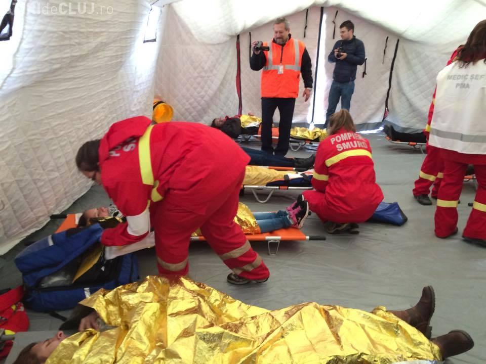 ”Exercițiul s-a desfășurat pe baza unui scenariu conform căruia o aeronavă a companiei X-AERO fiind în procesul aterizării, a luat contactul cu solul înainte de pragul pistei, din cauza condițiilor meteo nefavorabile – vizibilitatea redusă pe direcția de aterizare. Trenul de aterizare a fost deteriorat, fuselajul și planurile aeronavei au suferit de asemenea avarii și s-au format coloane de fum care marchează primele indicii de izbucnire a unui incendiu în aeronavă. La bordul aeronavei se aflau 70 de pasageri, plus echipajul format din 5 persoane. Încărcătura aeronavei nu conținea materiale periculoase, iar cantitatea de combustibil din aeronavă la momentul aterizării era de 4 tone”, precizează directorul Aeroportului Cluj, David Ciceo.
