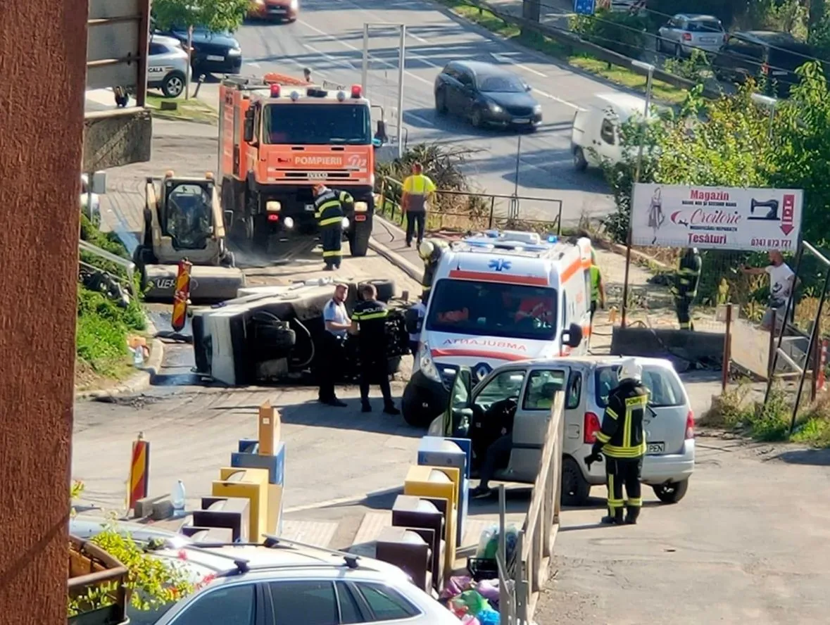 ,,La fața locului s-au deplasat o autospecială cu modul de descarcerare și un echipaj SAJ, unde au găsit un bărbat în stare de conștiență, care a necesitat consult medical. Pompierii asigură măsuri preventive la locul accidentului, având în vedere scurgerile de carburanți raportate”, informează ISU Cluj.