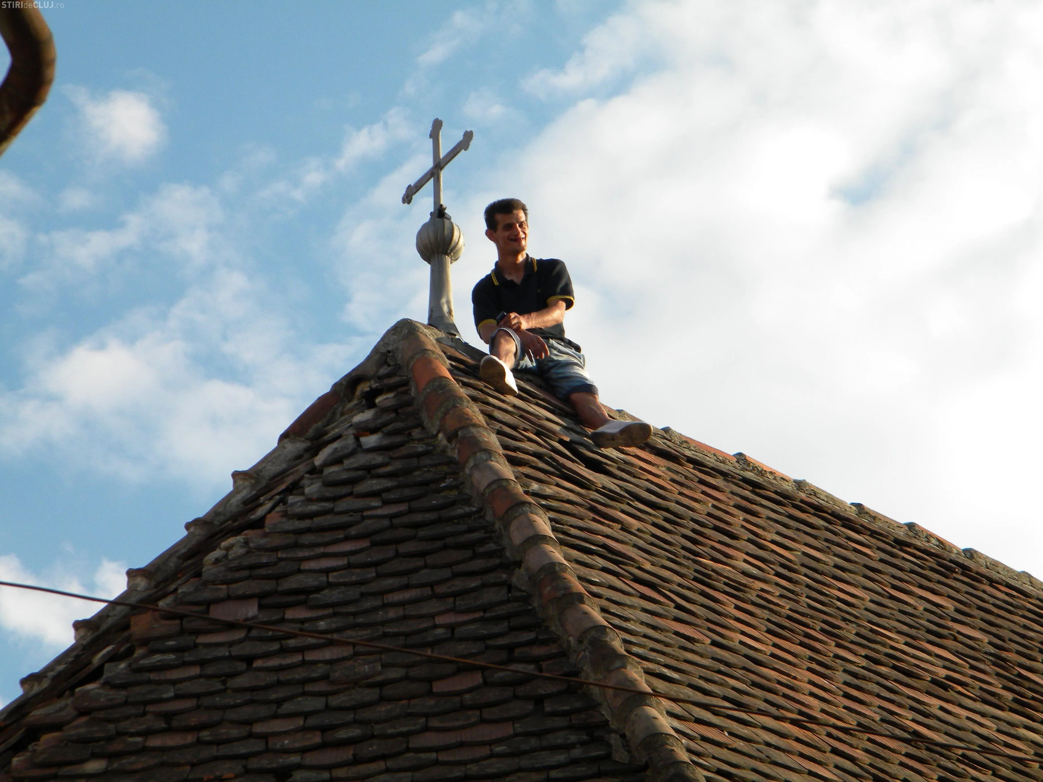 Un bărbat s-a urcat pe acoperișul Bisericii Ioan Bob, de pe strada Ioan Bob, și amenință că se aruncă, dacă Emil Boc nu îi dă o casă.
