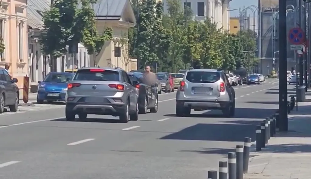 Un bărbat cu un comportament suspect a sărit în mijlocul străzii Avram Iancu -VIDEO